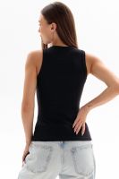 Женская майка в рубчик – трендовая и стильная модель в Вашем гардеробе для любого случая. Благодаря идеальной посадке майка лапша на широких бретелях деликатно облегает фигуру, отлично тянется и подчеркнет Вашу стройность и сексуальность. Майка женская выполнена из трикотажной хлопковой ткани премиум класса. Ткань в мелкий рубчик очень приятна к телу и на ощупь, мягкая и дышащая. Благодаря небольшому добавлению лайкры в составе, эластичный кроп топ с открытыми плечами без рукавов в рубчик хорошо держит форму, не вытягивается и не скатывается. Круглый вырез горловины и проймы изделия обработаны бейкой из основного полотна.