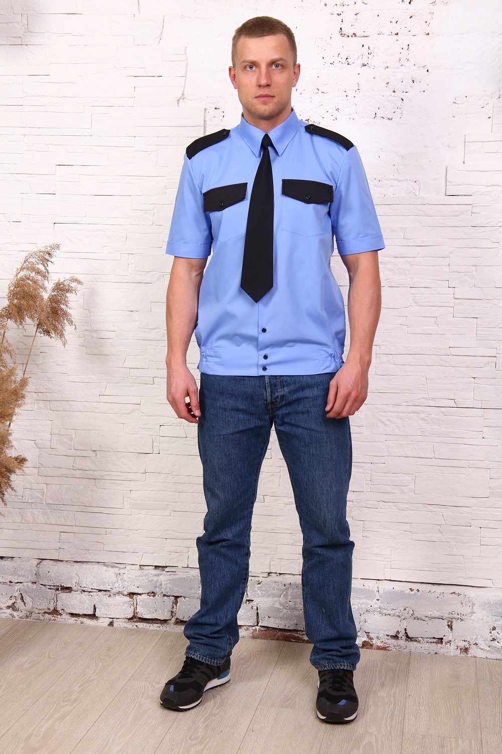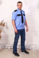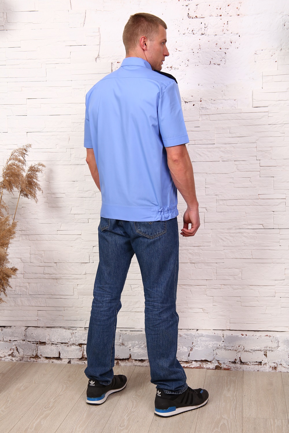 Рубашка охранника мужская, на поясе, короткий рукав, два нагрудных кармана, погоны. Ткань - тиси. Легко утюжится, низкая сминаемость, износостойкая ткань. Размер по бедрам указан в положении стянутом резинкой - и в растянутом.