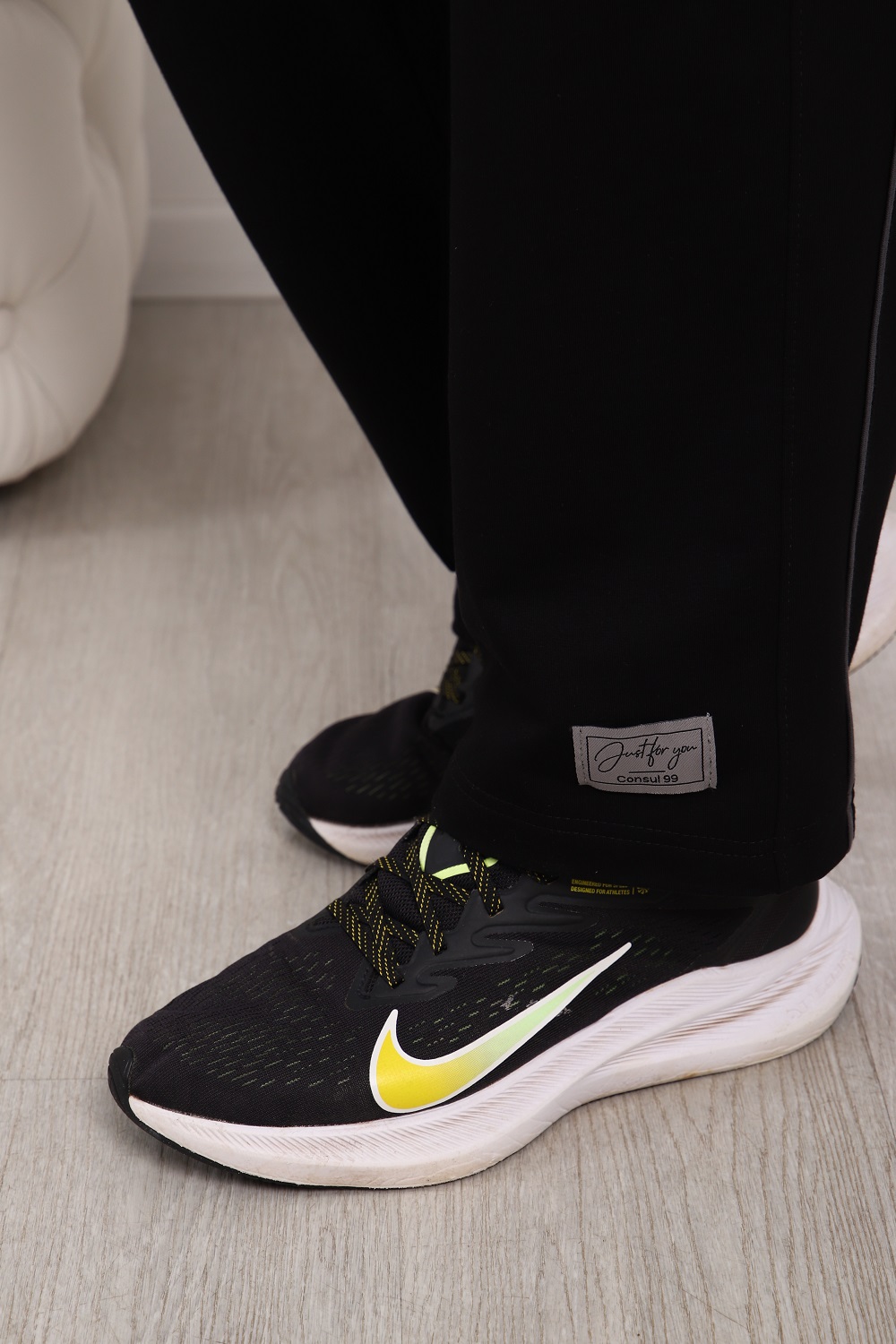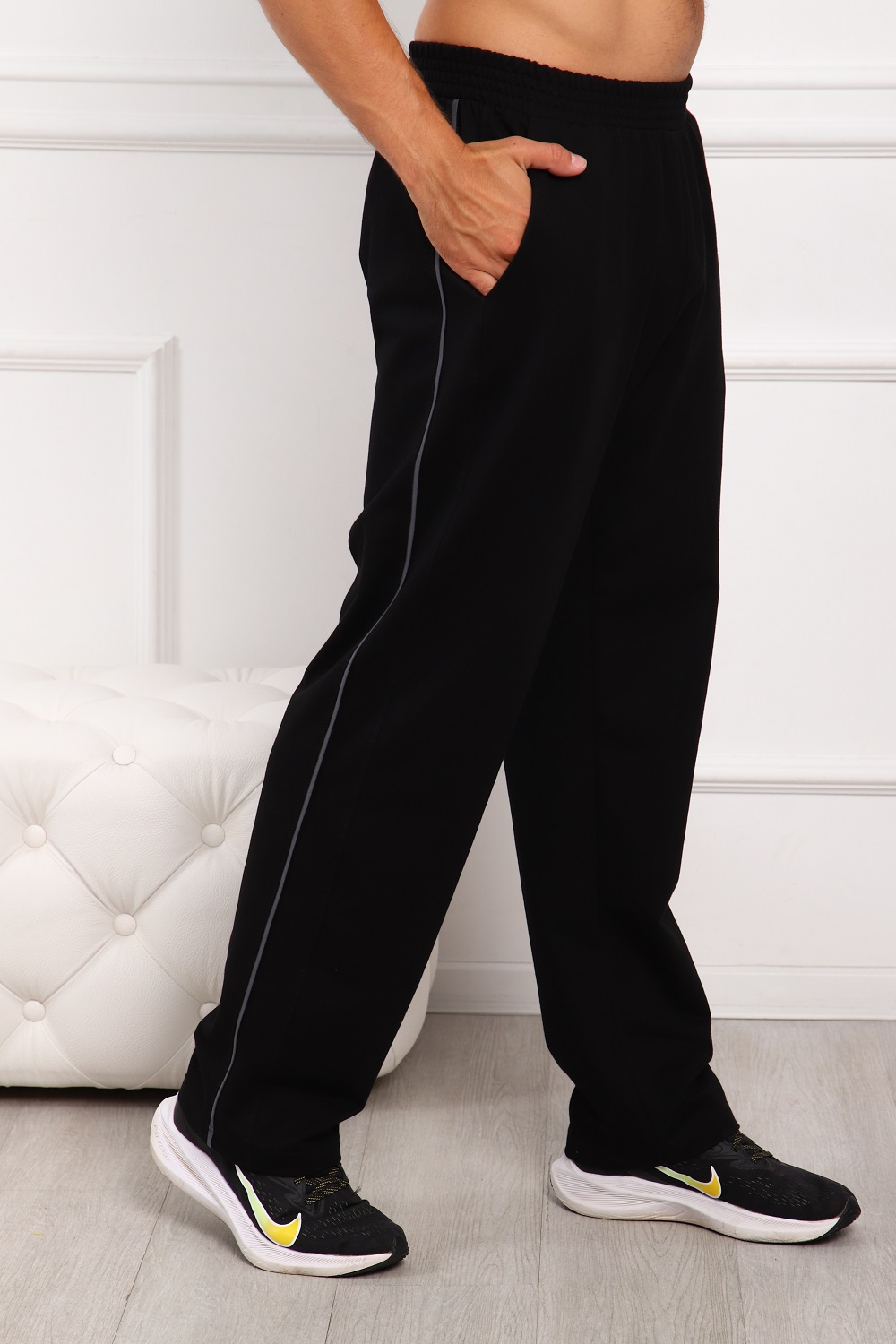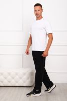 Брюки мужские с лампасами, с боковыми карманами и с нашивкой по низу левой брючины. Удобный эластичный пояс. Маломнущийся трикотаж, с высоким содержанием хлопка.