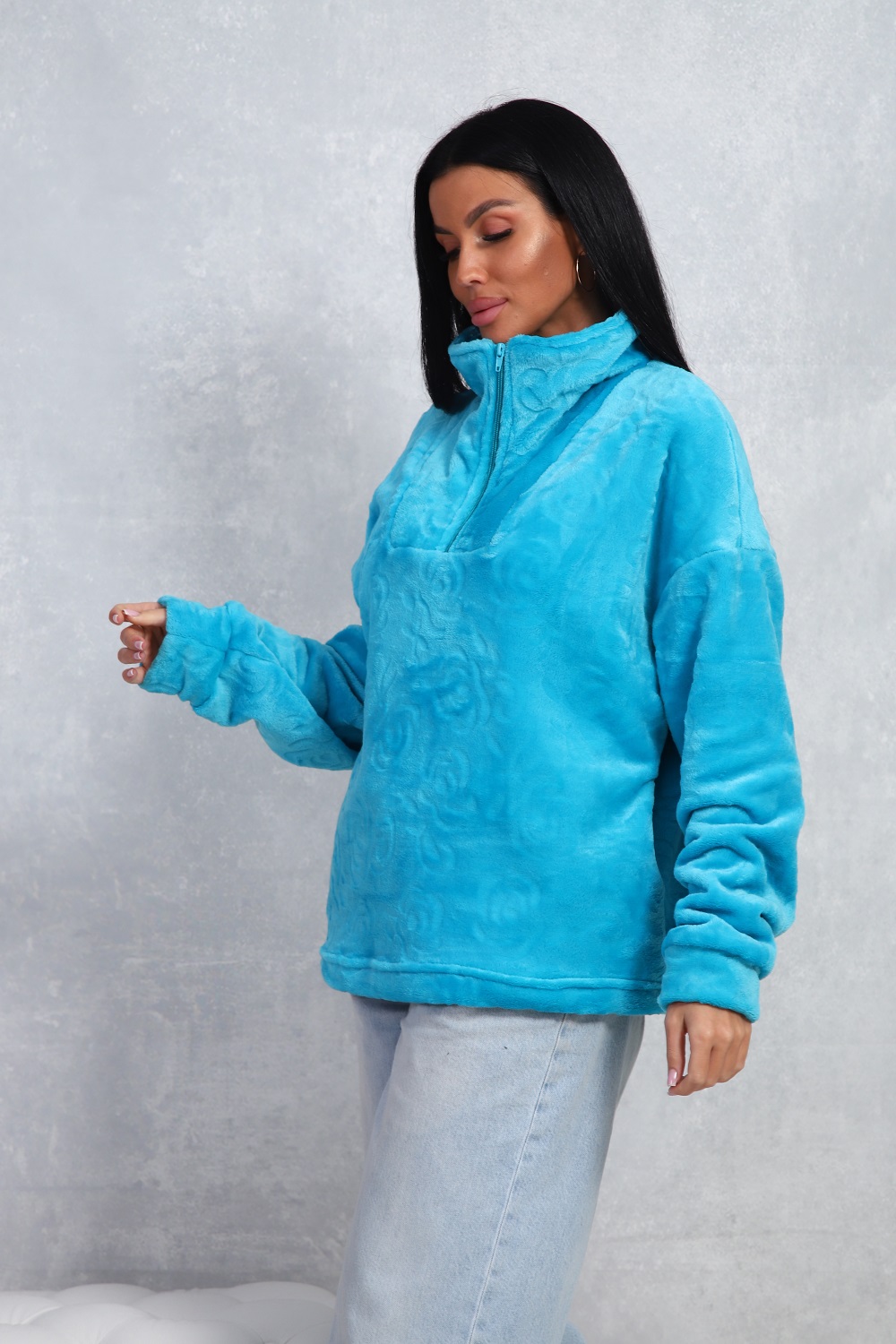 Толстовка женская свободного кроя, из уютного теплого велсофта, с комфортным воротом на молнии, с двумя боковыми карманами. Не мнётся, легко стирается.