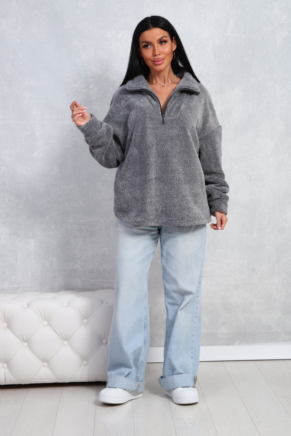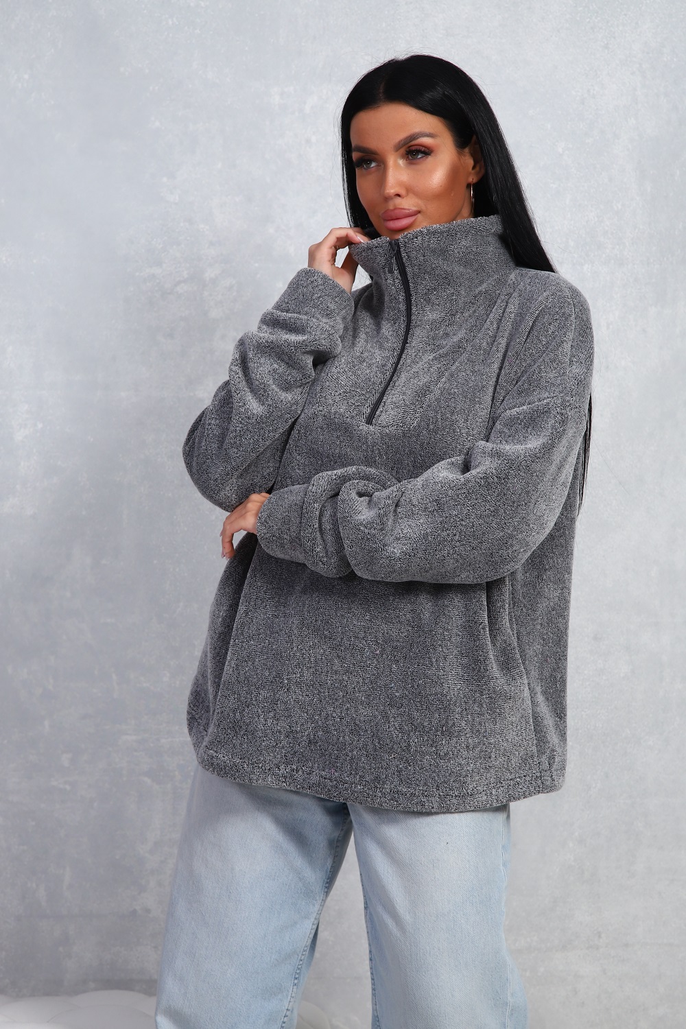 Толстовка женская свободного кроя, из уютного теплого велсофта, с комфортным воротом на молнии, с двумя боковыми карманами. Не мнётся, легко стирается.
