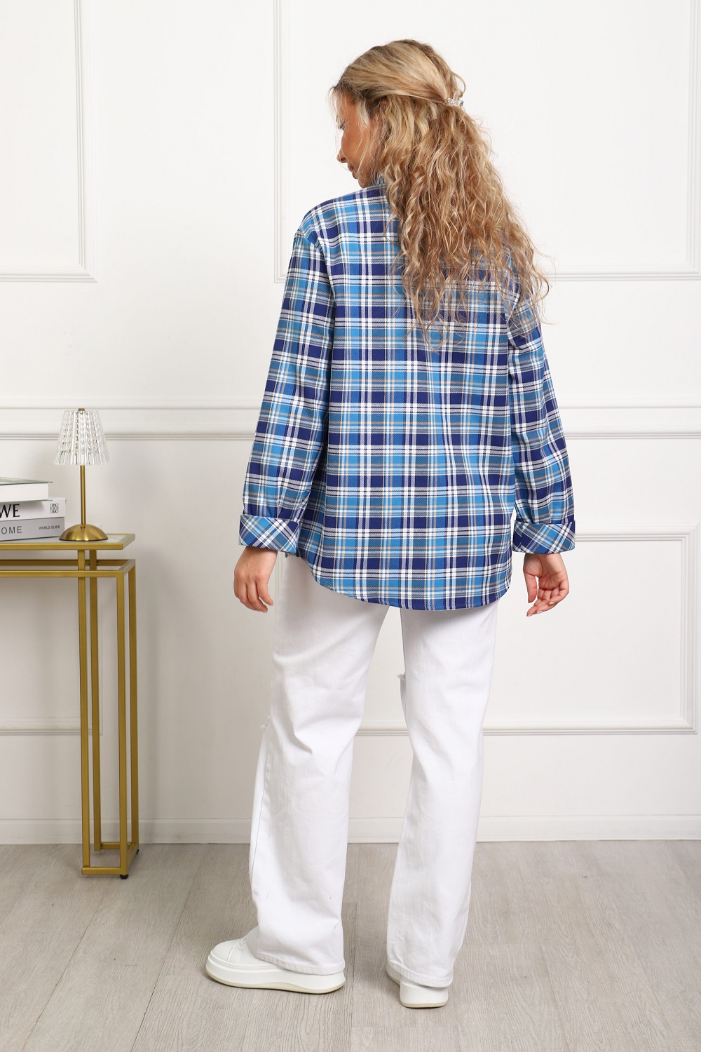 Женская теплая рубашка с очень удобными карманами-кенгуру и специальным акцентным чёрным карманом для смартфона (пластиковых карт, ручек, очков и т.п.), один из карманов-кенгуру можно застегивать петелькой на пуговицу. Рукава с манжетом, который подгибается - благодаря этому длина рукава регулируется в пределах 5 см (можно сделать чуть короче, чуть длинне). Крой рубашки очень комфортный, изделие не сковывает движений. Прямой силуэт стройнит. Ткань - фуле (относительно плотный материал, с небольшим начёсом с изнанки), 100% хлопок. Фуле легко утюжится, относительно не сильно мнётся, ткань устойчива к износу. Замечательный выбор для отдыха и работы. Наверняка, станет Вашей любимой рубашкой. Обратите, пожалуйста, внимание на рубашку аналогичного кроя, но из ткани шотландки - артикул 1072.