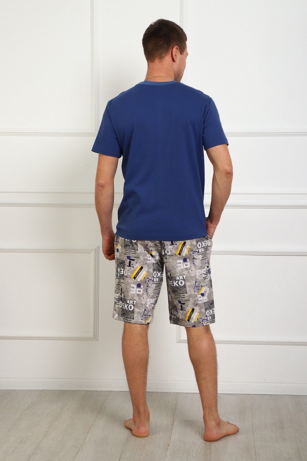 Костюм мужской: футболка с атмосферным принтом на груди, с короткими рукавами и шорты на эластичном поясе, с боковыми карманами. Комфорт 100% хлопка.