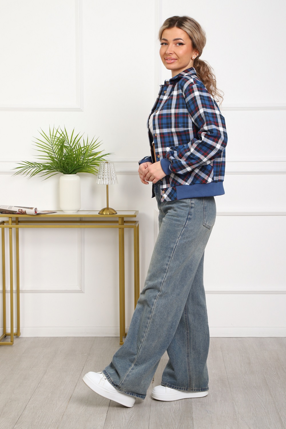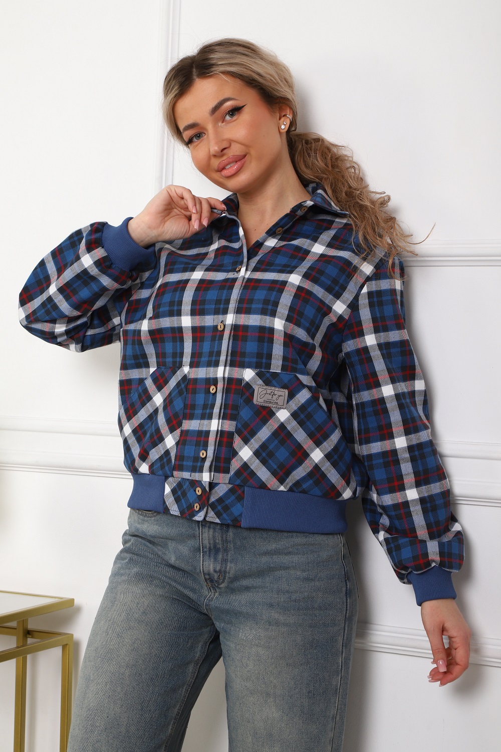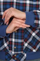 Рубашка женская кроя "бомбер" из тёплого хлопка (ткань - фуле, хлопок 100%). Длинный рукав на манжете, манжеты и пояс из трикотажа. Два удобных кармана, в которые помещается смартфон. Для сохранения эластичности трикотажа стирать рубашку рекомендуется в мешке для стирки. Ткань легко утюжится, относительно износостойкая, долго сохраняет презентабельный вид.