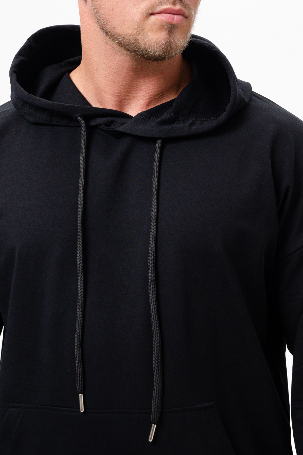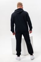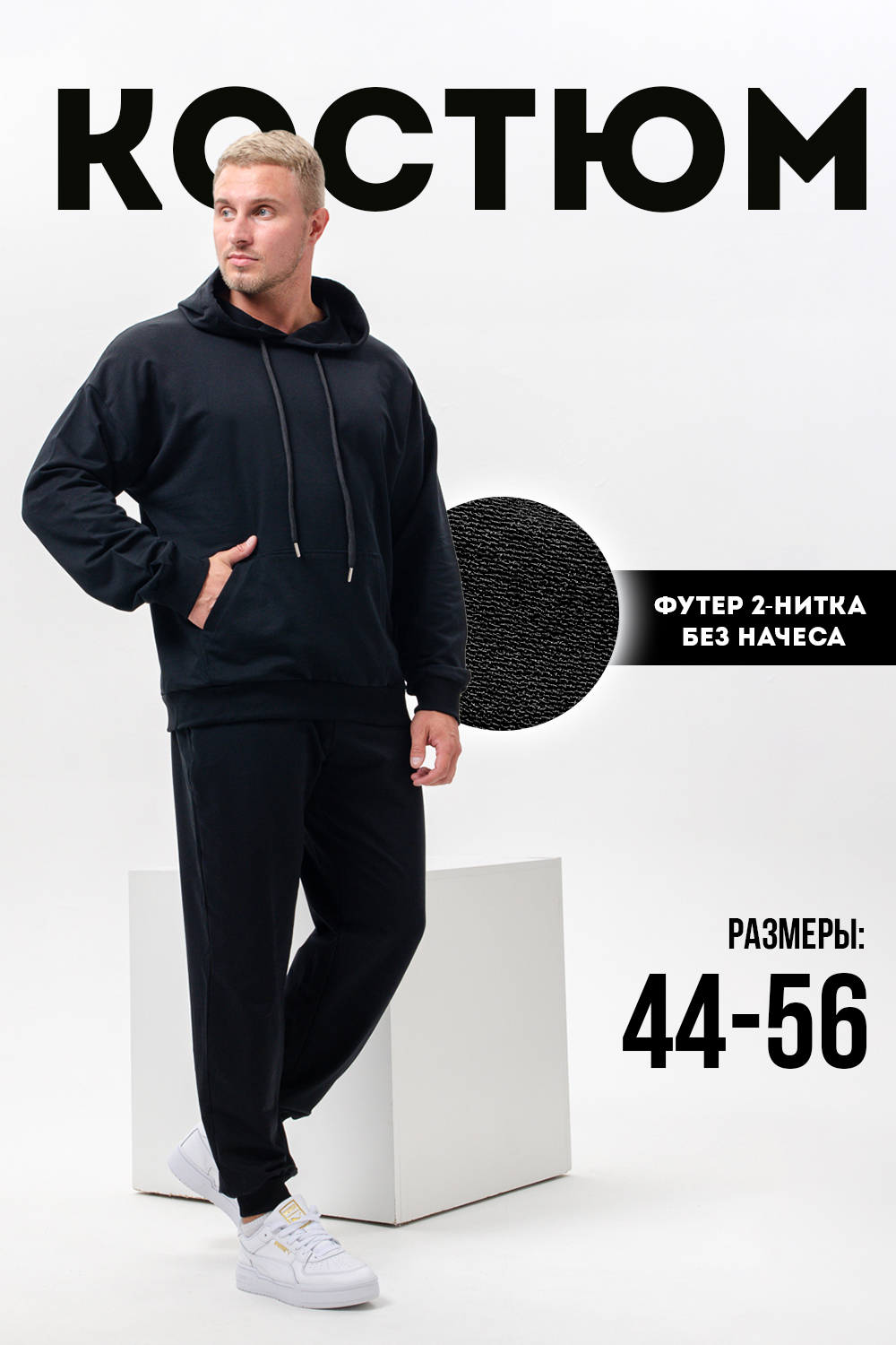 Костюм спортивный мужской с худи и джоггерами. Костюм свободного кроя состоит из толстовки с капюшоном и карманом кенгуру и брюк джоггеров на манжете с карманами в боковых швах. Костюм однотонный сшит из качественного хлопкового трикотажного материала - футера 2-х нитки. Обладает отличной эластичностью, не сковывает движений. Идеален для занятий спортом. Зимой костюм возможно носить в тренажерный зал или использовать как домашнюю одежду.