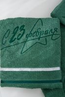 -Подарочное махровое полотенце “С 23 февраля” — это отличный сувенир для настоящих мужчин в честь Дня защитника Отечества! Глубокий зелёный цвет, тематическая вышивка со стильной надписью и звездой делают это полотенце ярким и значимым подарком. Оно изготовлено из прочного и мягкого хлопка, прекрасно впитывает влагу и быстро сохнет, обеспечивая комфорт после душа или бани. Такое полотенце подчеркнёт внимание, заботу и уважение — идеальный выбор для коллег, друзей и близких мужчин!