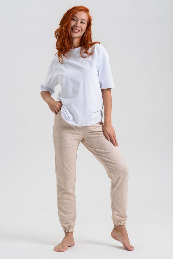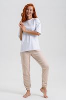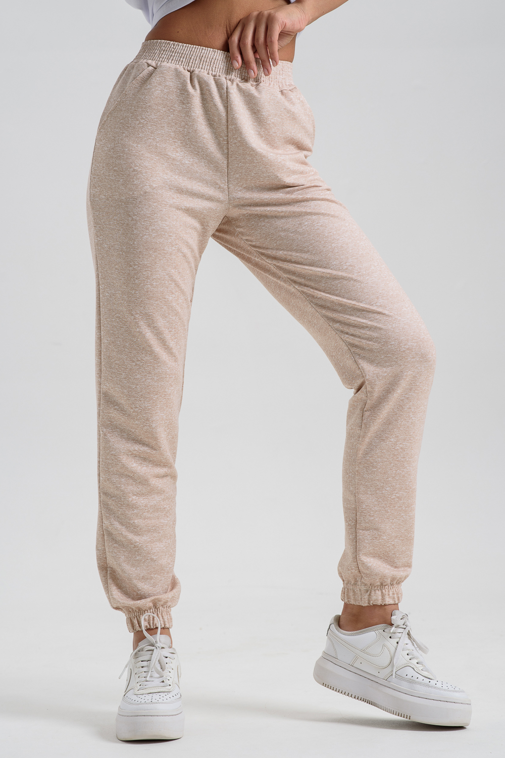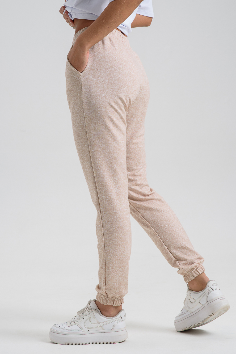Женские джеггинсы изготовлены из мягкой приятной к телу ткани с добавлением хлопка и эластана. Высокая посадка, слегка зауженный силуэт обеспечивают свободу движений и комфорт в носке. Пояс на резинке. Карманы в боковых швах.