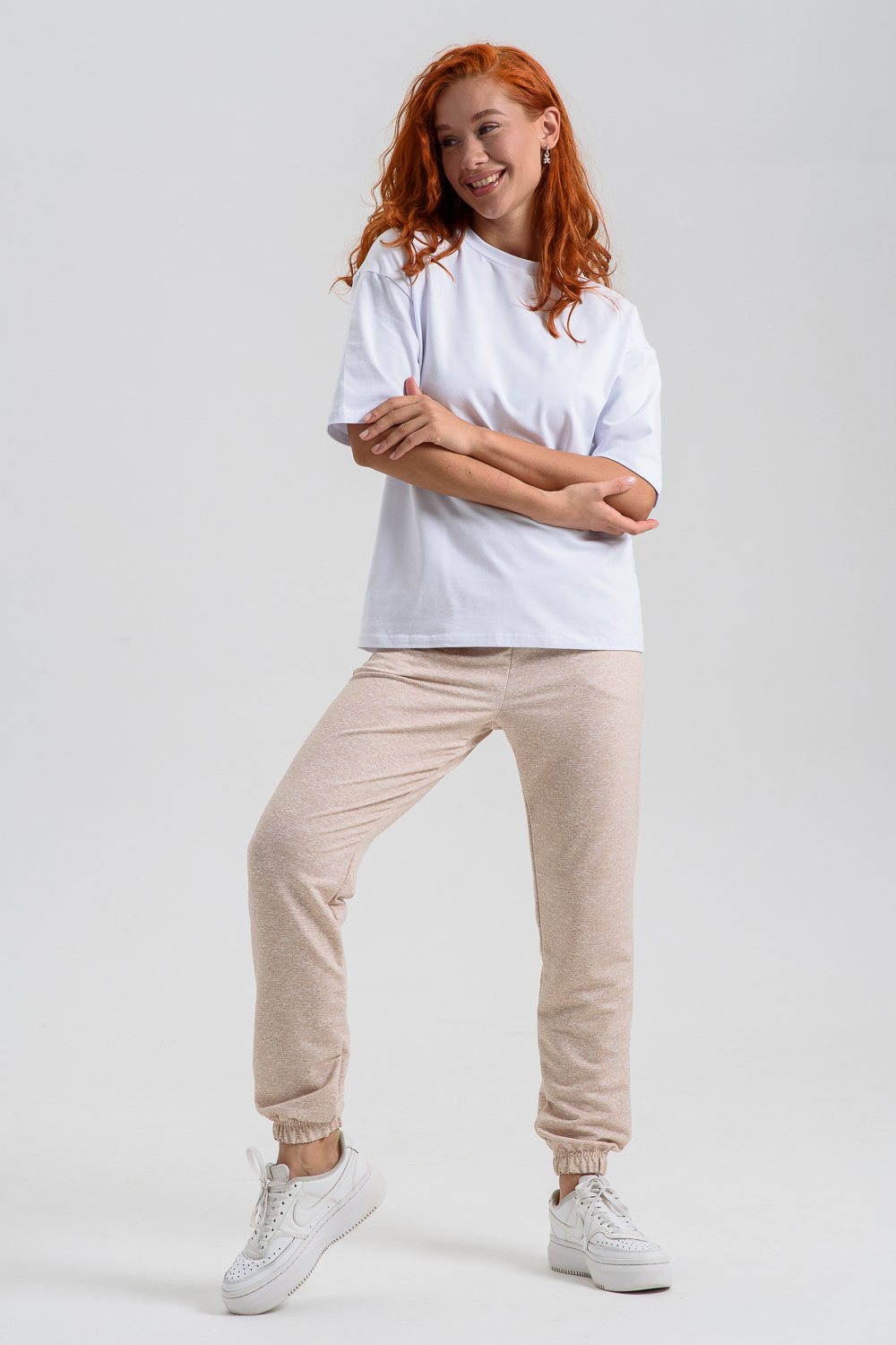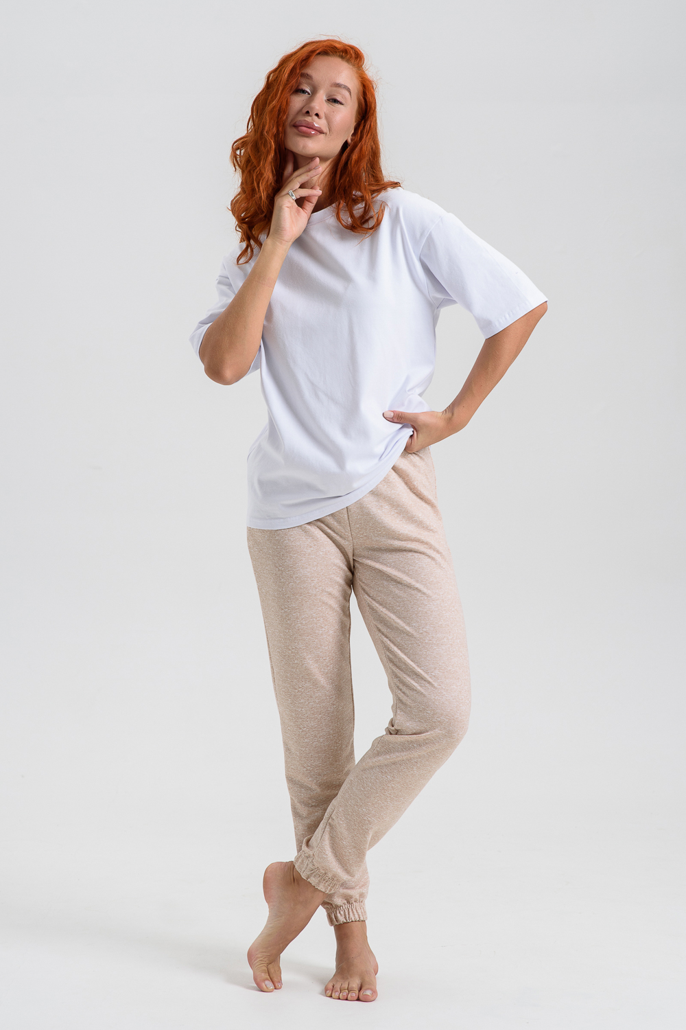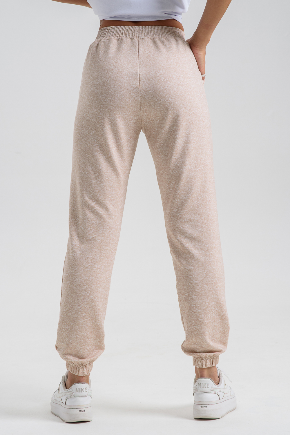 Женские джеггинсы изготовлены из мягкой приятной к телу ткани с добавлением хлопка и эластана. Высокая посадка, слегка зауженный силуэт обеспечивают свободу движений и комфорт в носке. Пояс на резинке. Карманы в боковых швах.