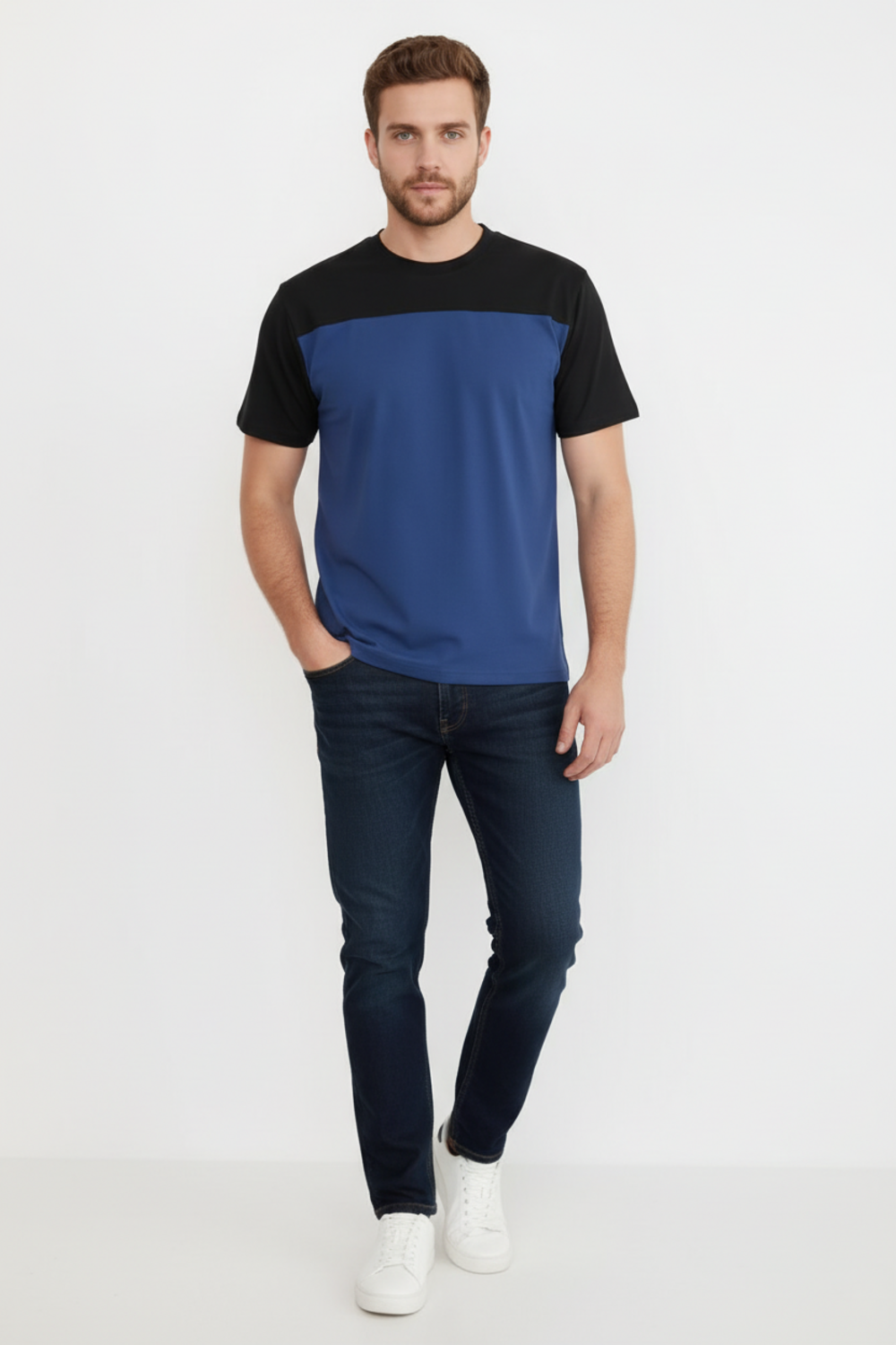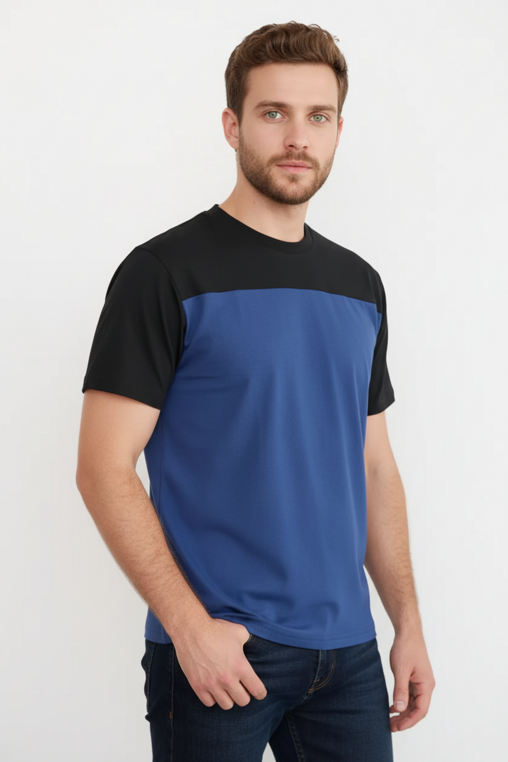 Современные мужские футболки прямого кроя, выполненные из мягкой и приятной на ощупь ткани. Двухцветный дизайн с контрастной вставкой на плечах и рукавах придаёт моделям стильный и динамичный вид. Классический круглый вырез горловины обеспечивает комфорт посадки. Идеальный выбор для повседневного гардероба, легко сочетаются с джинсами и брюками, подойдут как для активного отдыха, так и для городской прогулки.