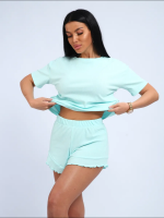 Летний костюм женский с шортами домашний - хит этого сезона. Костюм домашний женский летний выполнен из легкого, тонкого, но прочного трикотажного полотна, в составе которого 95% хлопок. Повседневное изделие включает в себя шорты и футболку. Мягкая хлопковая ткань костюма приятна к телу, позволяет коже дышать, не деформируется и не сковывает движения. Шорты свободные без карманов имеют, широкую резинку, которая не давит на живот, что позволяет чувствовать себя комфортно. Базовая футболочка свободного кроя имеет среднюю длину и короткий рукав. Пижама женская с шортами прямого кроя настолько универсальная, что можно использовать как в качестве домашней одежды, так и для активного отдыха. Благодаря своему фасону костюм подходит дамам всех возрастов. Широкая размерная сетка позволит подобрать модный образ для женщин больших размеров, полных, высоких и невысоких, среднего роста. Порадуй себя, подруг и любимую хорошим подарком на 8 марта! Порадуй себя, бабушку и маму подарком. Пижама женская — это идеальное сочетание комфорта, стиля и универсальности. В линейке представлены большие размеры, позволяющие каждой выбрать свой идеальный вариант. Особое внимание уделено отличному выбору для будущих мам. Она идеально подойдет как одежда для дома. Изделие легко комбинируется с верхней одеждой. Костюм домашний станет незаменимым элементом базового гардероба, а также отличной идеей для подарка для женщин — практичного, красивого и уместного в любое время года. Для семейных образов под формат family look костюм можно сочетать с вещами, подобранными детям.
