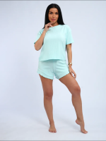 Летний костюм женский с шортами домашний - хит этого сезона. Костюм домашний женский летний выполнен из легкого, тонкого, но прочного трикотажного полотна, в составе которого 95% хлопок. Повседневное изделие включает в себя шорты и футболку. Мягкая хлопковая ткань костюма приятна к телу, позволяет коже дышать, не деформируется и не сковывает движения. Шорты свободные без карманов имеют, широкую резинку, которая не давит на живот, что позволяет чувствовать себя комфортно. Базовая футболочка свободного кроя имеет среднюю длину и короткий рукав. Пижама женская с шортами прямого кроя настолько универсальная, что можно использовать как в качестве домашней одежды, так и для активного отдыха. Благодаря своему фасону костюм подходит дамам всех возрастов. Широкая размерная сетка позволит подобрать модный образ для женщин больших размеров, полных, высоких и невысоких, среднего роста. Порадуй себя, подруг и любимую хорошим подарком на 8 марта! Порадуй себя, бабушку и маму подарком. Пижама женская — это идеальное сочетание комфорта, стиля и универсальности. В линейке представлены большие размеры, позволяющие каждой выбрать свой идеальный вариант. Особое внимание уделено отличному выбору для будущих мам. Она идеально подойдет как одежда для дома. Изделие легко комбинируется с верхней одеждой. Костюм домашний станет незаменимым элементом базового гардероба, а также отличной идеей для подарка для женщин — практичного, красивого и уместного в любое время года. Для семейных образов под формат family look костюм можно сочетать с вещами, подобранными детям.