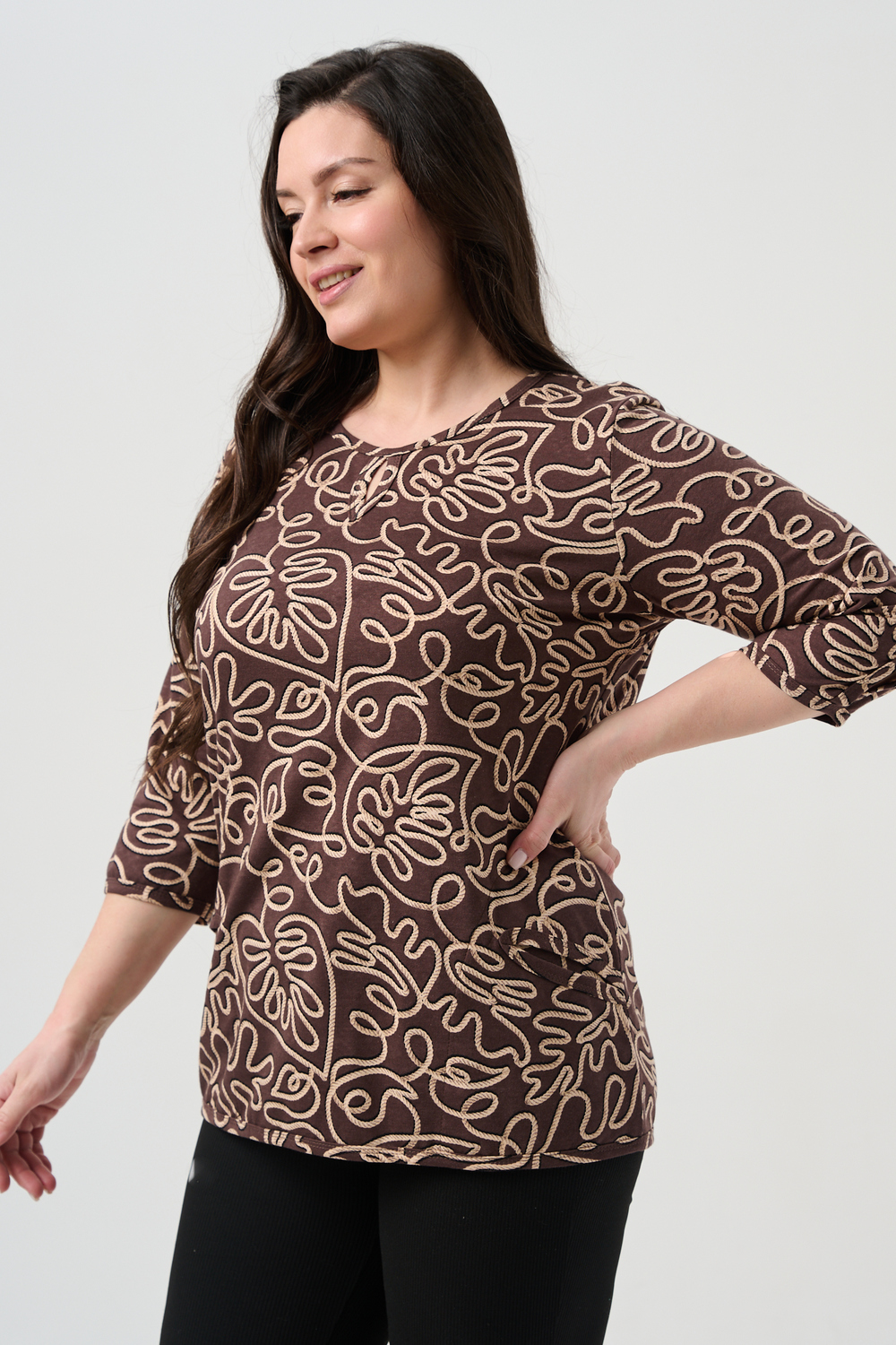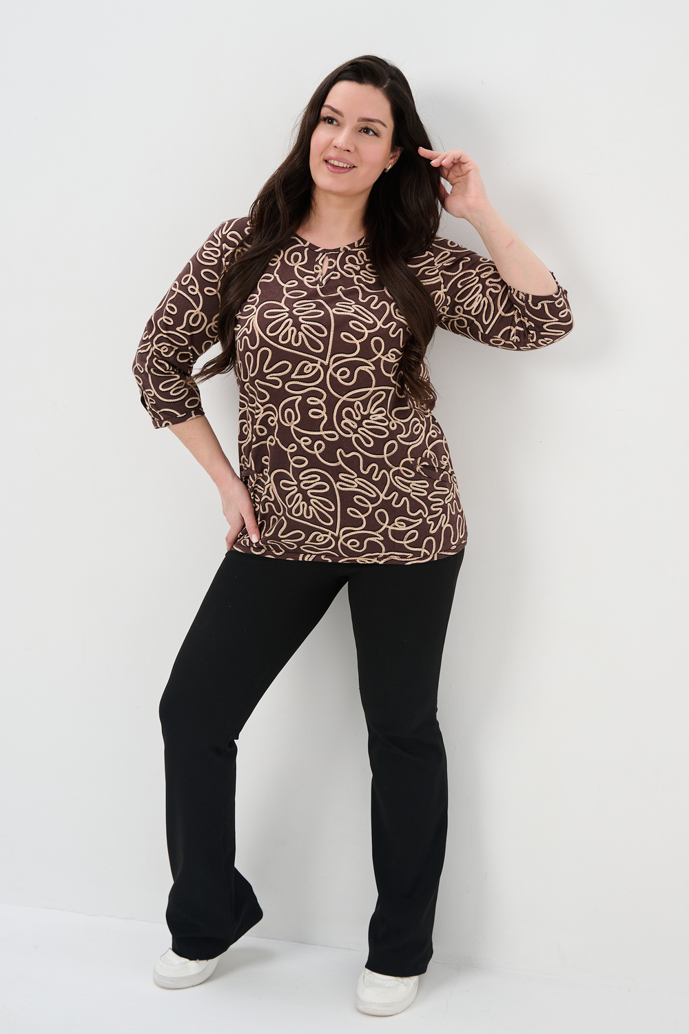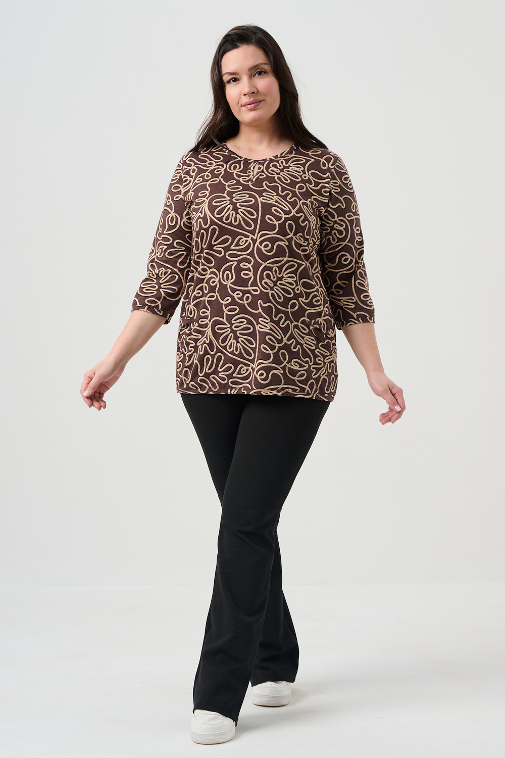 Универсальная базовая модель. Капелька на груди и на рукавах. Удобные внутренние карманы. Отличный вариант для женщин больших размеров. Благодаря своей оптимальной длине, рукаву 3/4, блузка обеспечивает универсальность и комфорт.