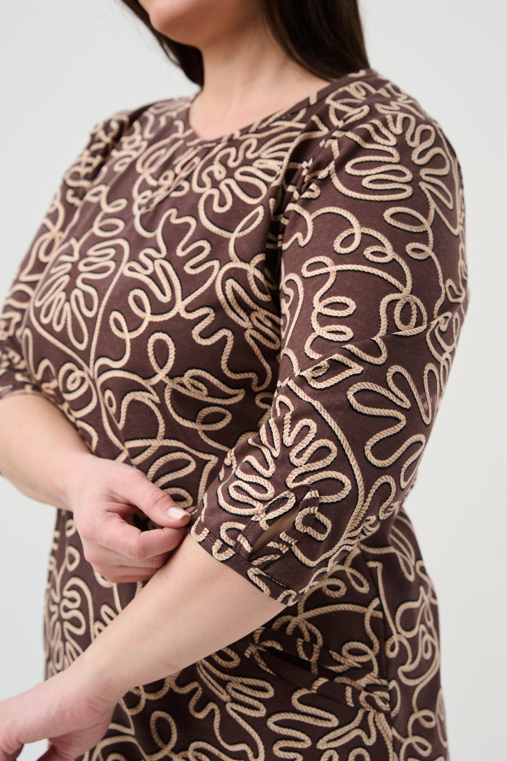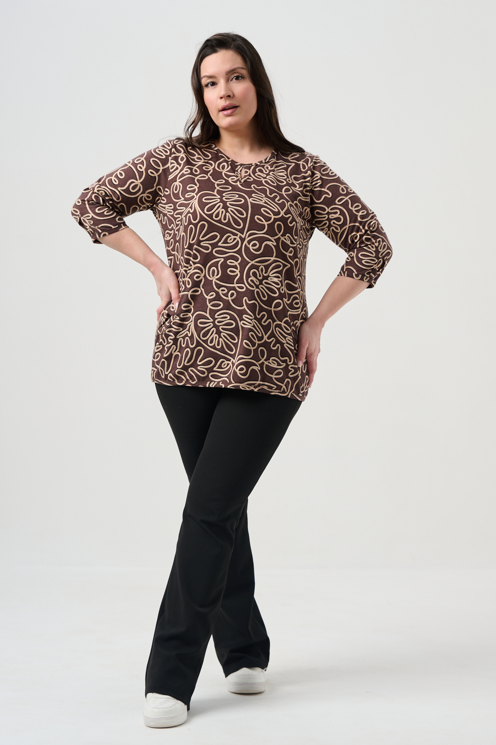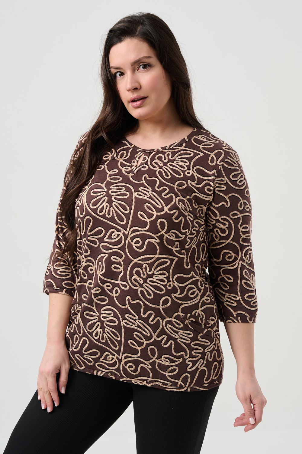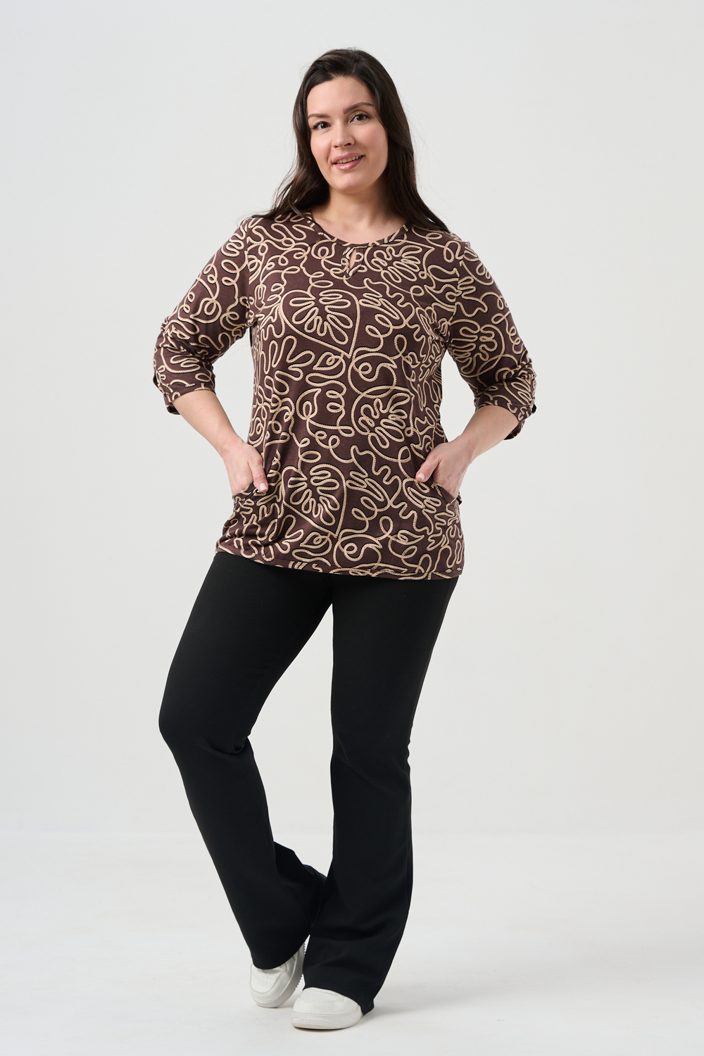 Универсальная базовая модель. Капелька на груди и на рукавах. Удобные внутренние карманы. Отличный вариант для женщин больших размеров. Благодаря своей оптимальной длине, рукаву 3/4, блузка обеспечивает универсальность и комфорт.