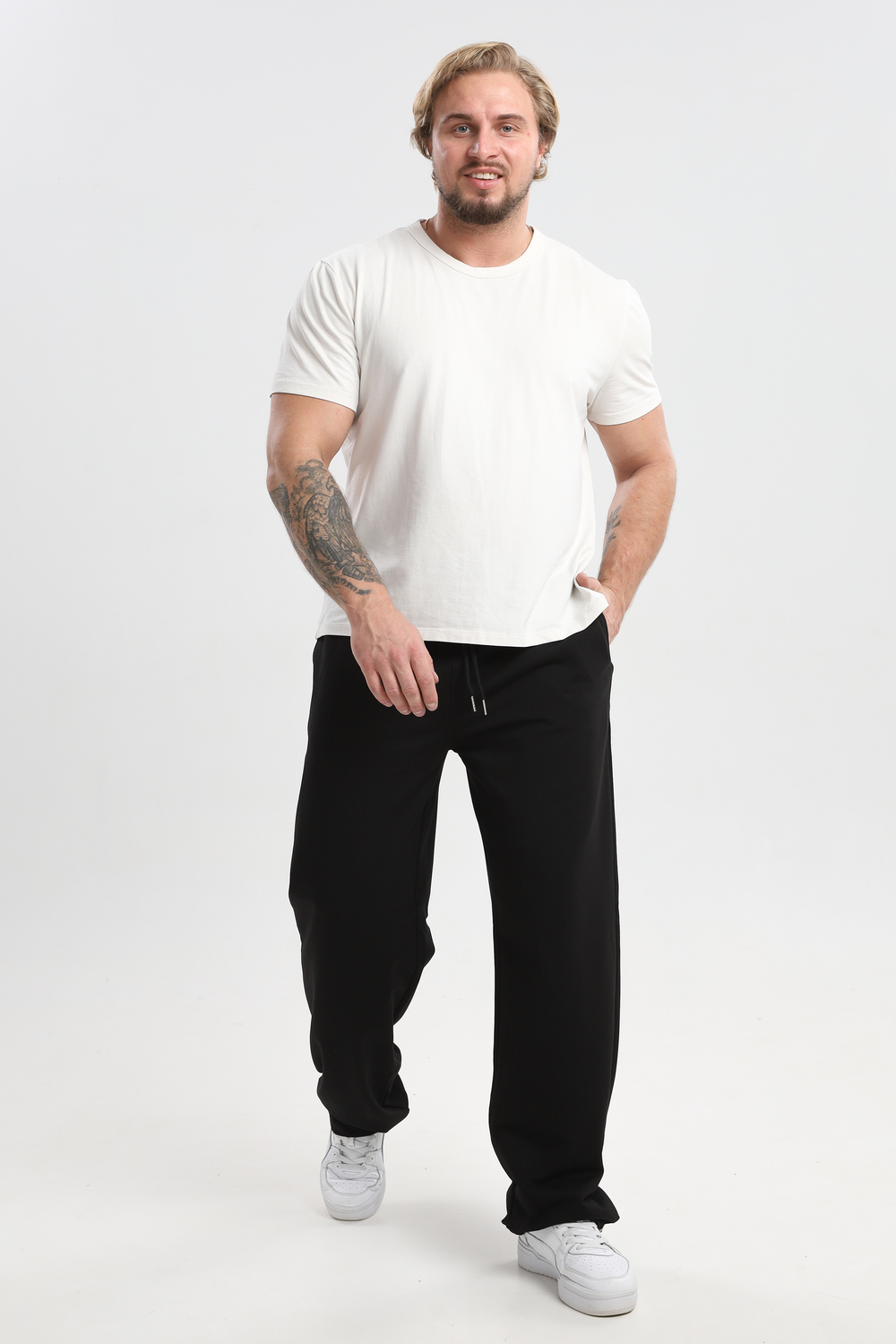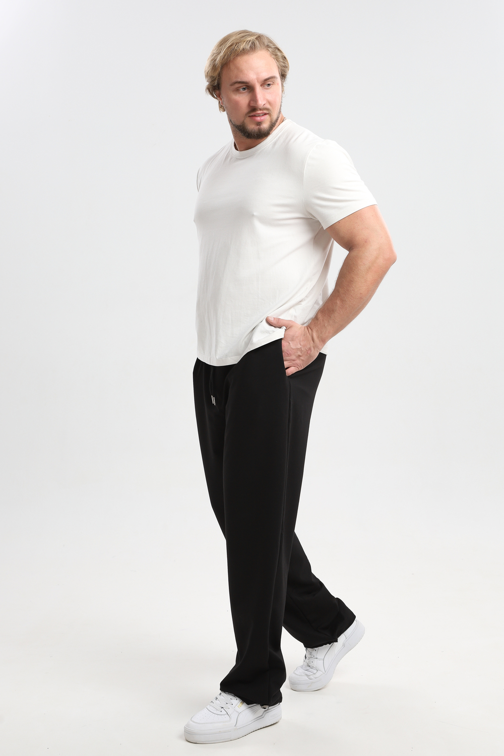 Мужские спортивные брюки прямого кроя - удобная модель для активного образа жизни, тренировок, прогулок и повседневной носки. Эластичный пояс со шнурком регулирует посадку, обеспечивая надежную фиксацию без давления. Благодаря такому крою штаны хорошо сидят на любой фигуре, подчеркивая силуэт и обеспечивая свободу движений. Универсальный фасон подходит для спорта, отдыха, прогулок и работы. Лаконичный дизайн без лишних деталей делает модель практичной на каждый день. Брюки легко комбинируются с разными стилями, оставаясь удобными и функциональными в любой ситуации.