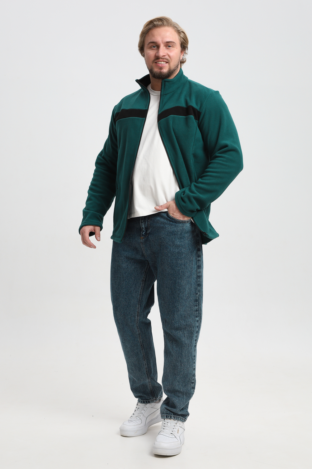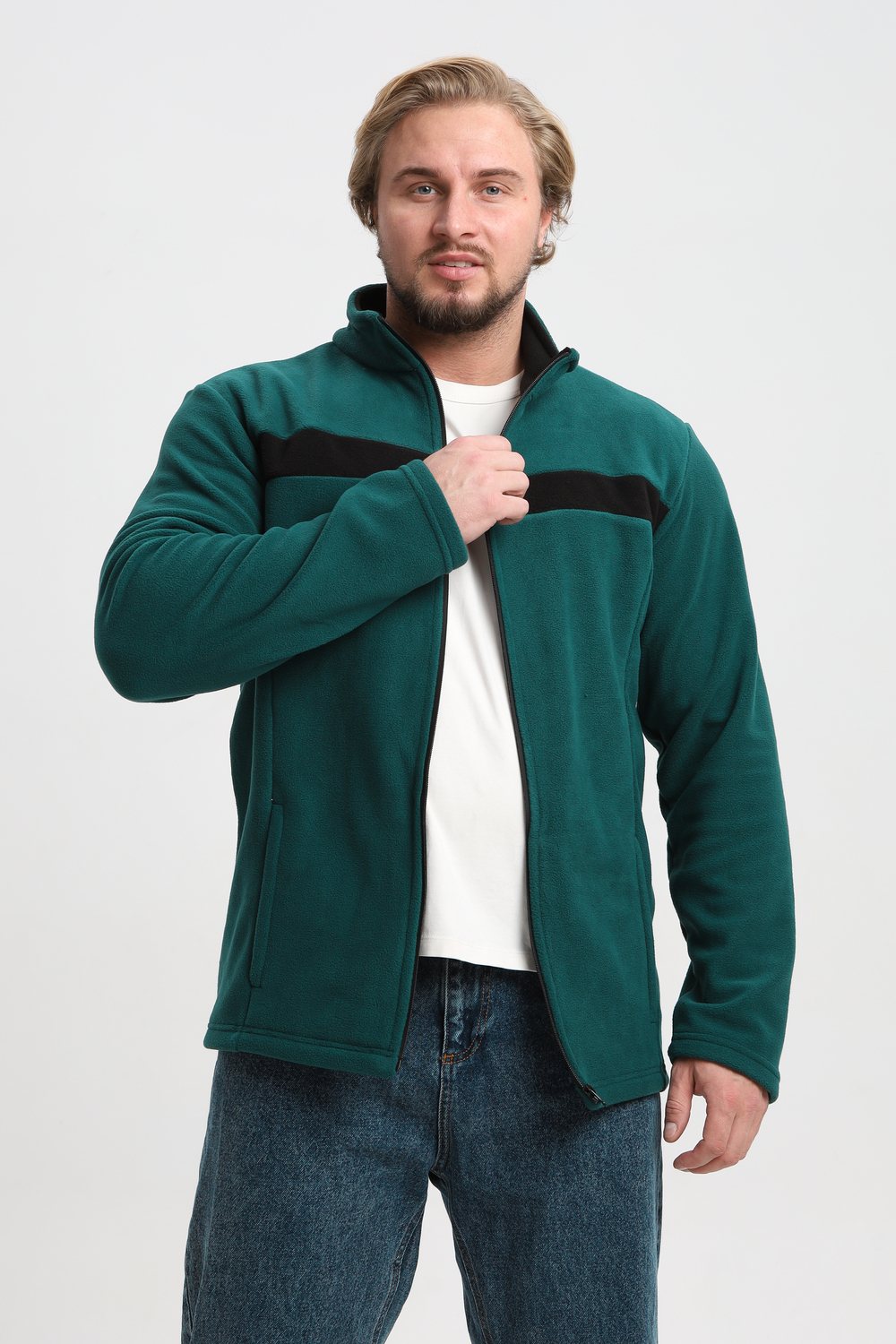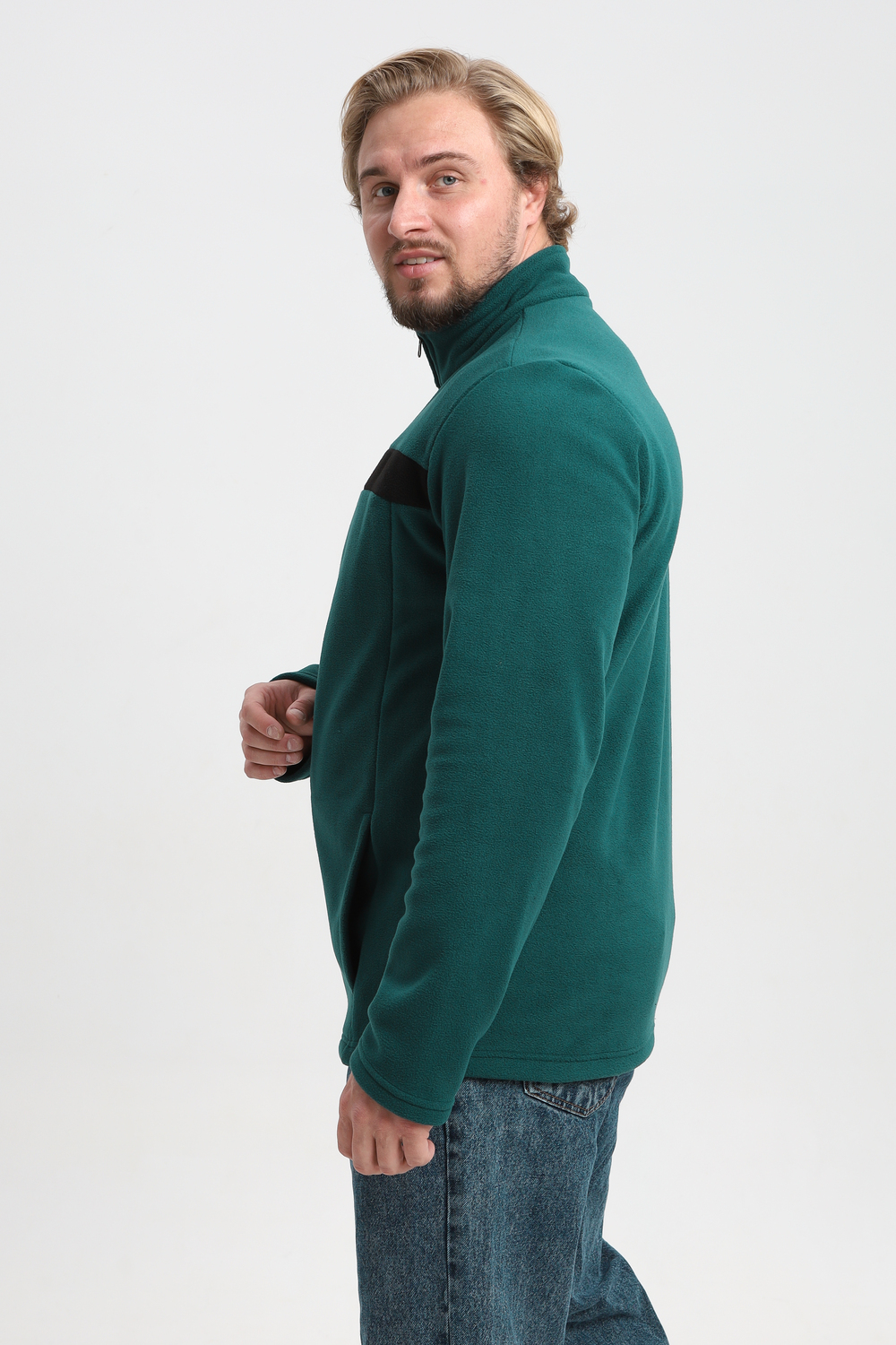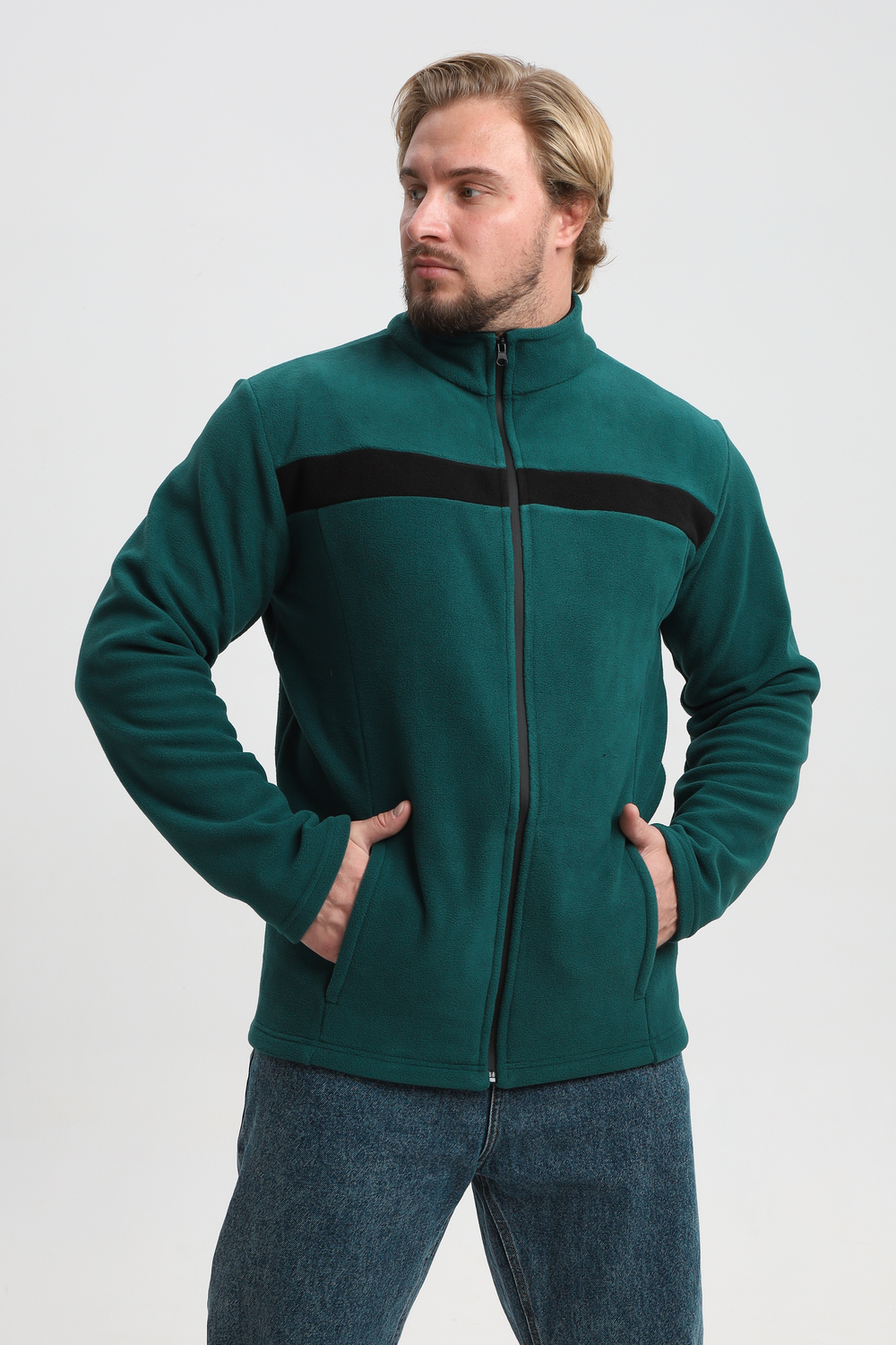 Мужской флисовый джемпер, идеальная посадка и комфорт при активных движениях. Воротник - стойка, два удобных кармана.
