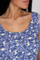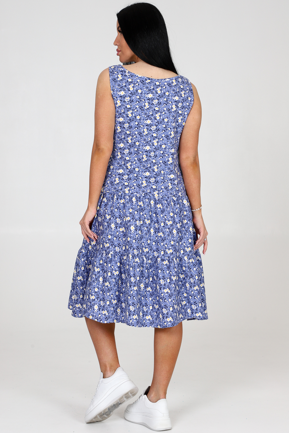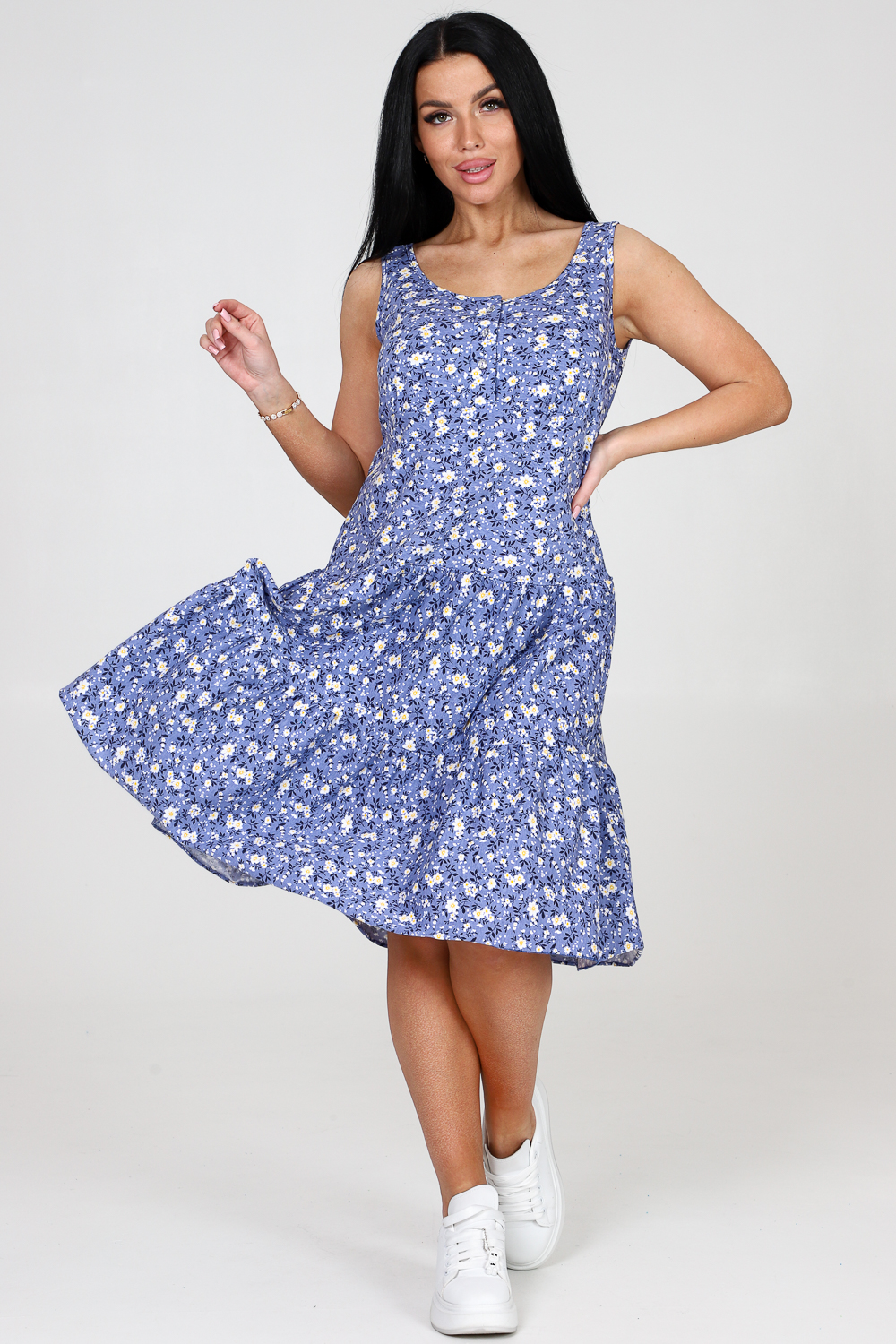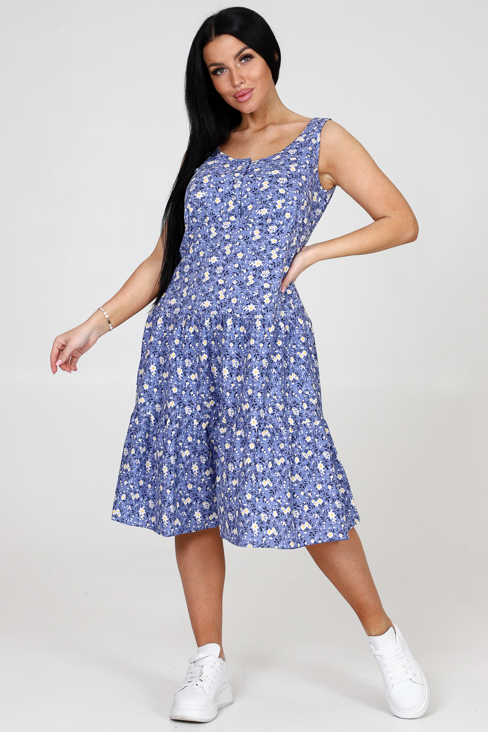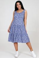 Сарафан женский из кулирки. Сарафан состоит из кокетки, которая застегивается на планку. Юбка изделия состоит из двух ярусов. Горловина и пройма изделия окантована.