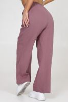 Брюки женские из муслина свободного покроя, на притачном поясе и с боковыми карманами.