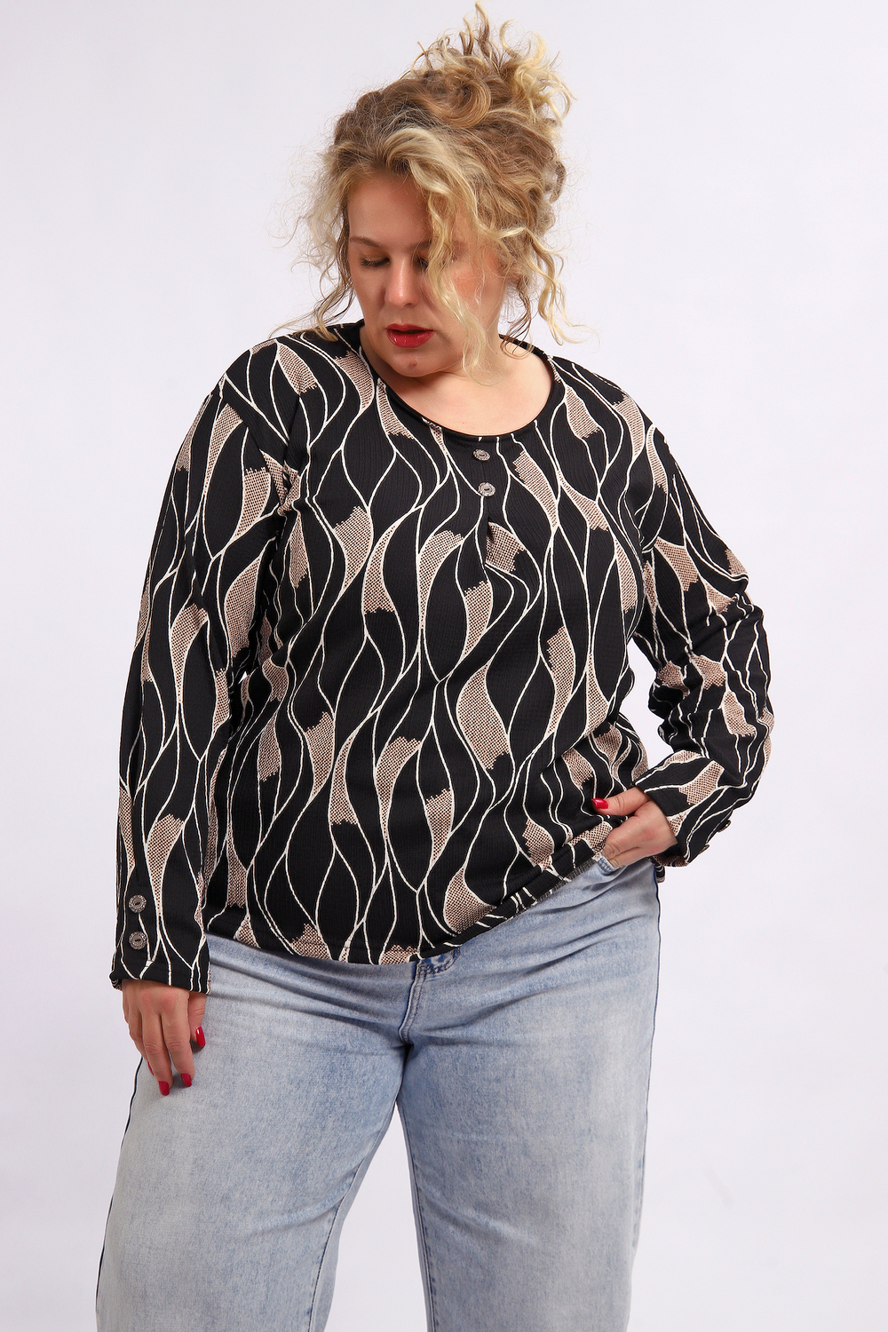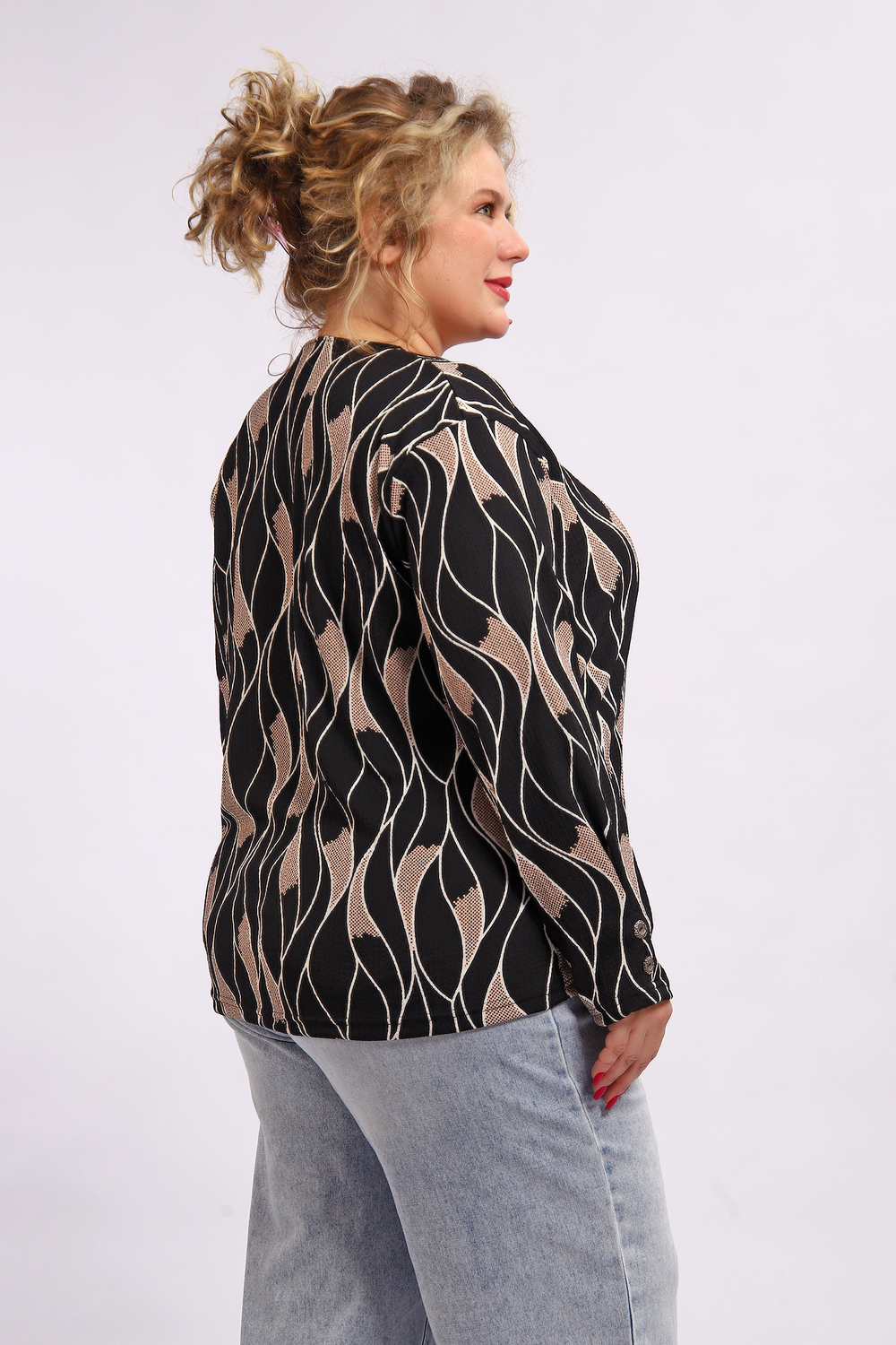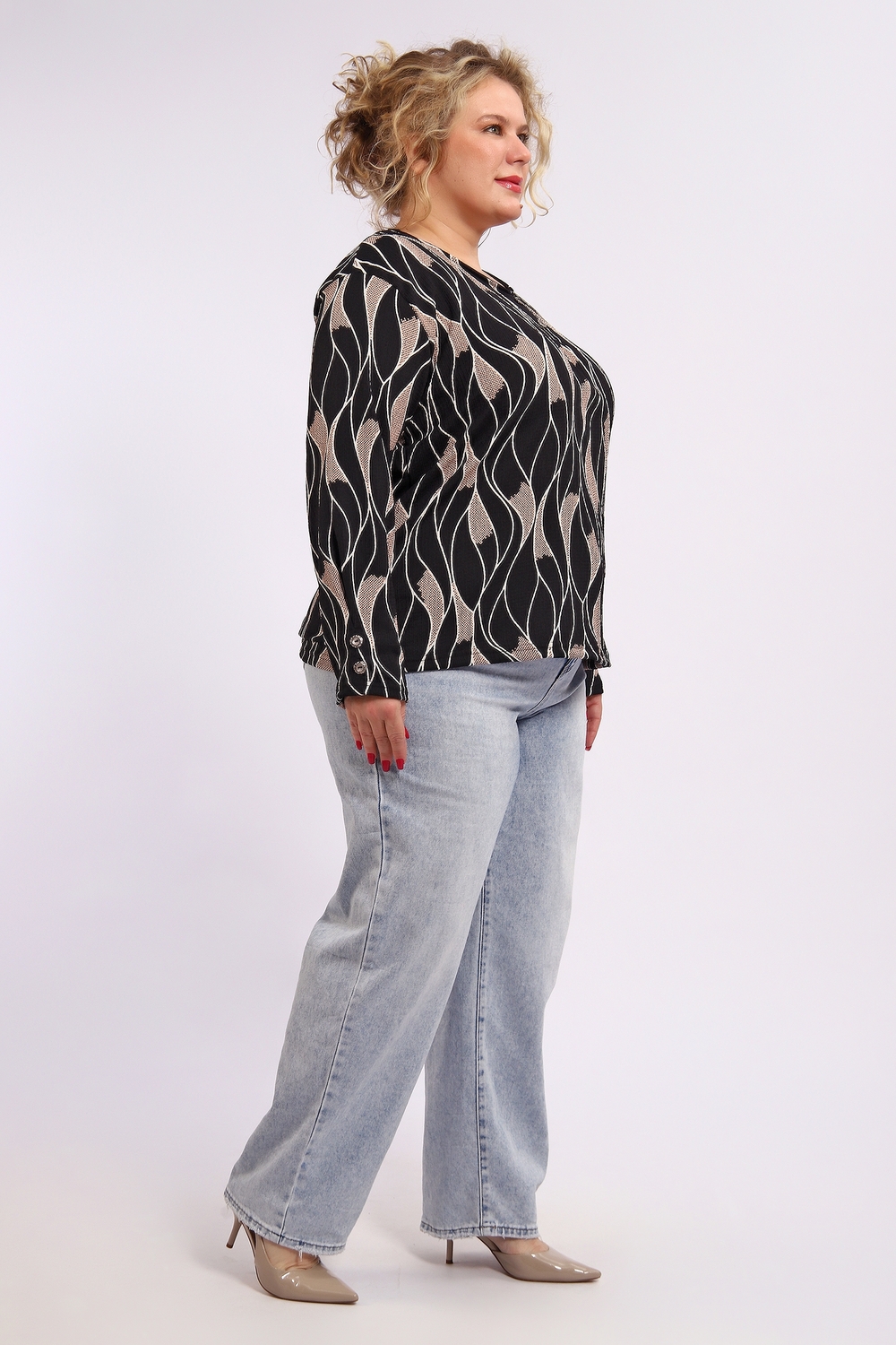 Элегантная блузка из 100?% полиэстера — практичная и стильная базовая вещь для повседневного и делового гардероба. Ткань отличается износостойкостью, хорошо держит форму, не мнётся и легко стирается. Контрастное черно?белое сочетание цвета, создающее выразительный визуальный эффект. Стандартная длина до линии бёдер подходит для сочетания с юбками и брюками.