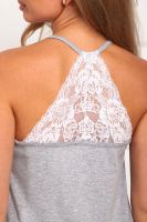 Сорочка женская из натурального трикотажа хлопок 100% Сорочка с подрезом по линии груди и четырьмя защипами. По центру лифа два декоративных банта. Спинка отделана кружевом. Вырез горловины, пройма и бретели выполнены из окантовки. Силуэт чуть расклёшенный к низу. Низ сорочки прямой по форме и обработан кружевом.