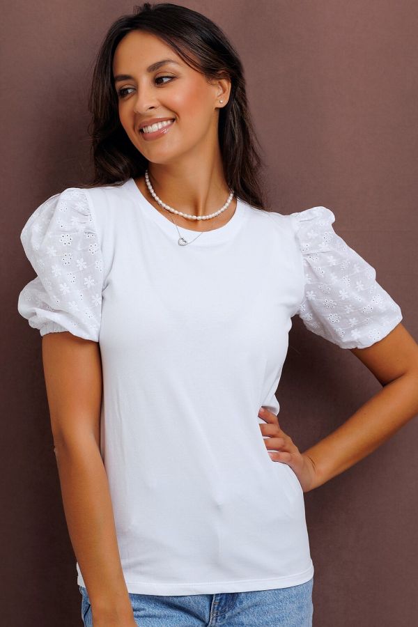 Новая весенняя коллекция от Рапоза отличается воздушными образами и весенними тонами. Абсолютная нежность. Женская футболка премиум качества из мягкого трикотажа свободного силуэта. Горловина округлая. Изюминкой эту модель делают объемные и рукава из перкали с шитьем, создавая кружевной эффект. Такая модель - отличная база для создания брендовых луков в стиле casual. Приобретите легкость, комфорт и свободу на каждый день, ведь эта вещь полюбится Вами с первого прикосновения. Рекомендуем сочетать с брюками и джинсами пастельной цветовой гаммы. Все товары бренда Raposa производятся в России (Иваново), используются только ткани премиального качества. Ограниченная коллекция только для этой весны!