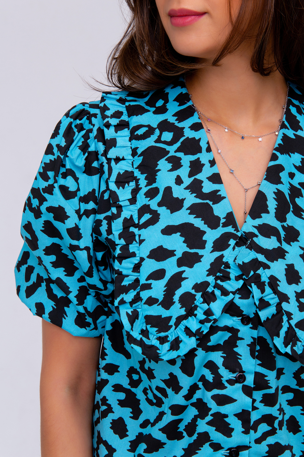 Очаровательная блузка с объемным округлым воротником на пуговицах. Рукав короткий. Оригинальный цветочный принт или насыщенный леопардовый принт - выбирайте на свой вкус, ведь она прекрасно подойдёт для тех событий и мероприятий, где хочется выглядеть нарядно, но не кричаще, а элегантно и с достоинством! Блузка выполнена из натуральной дышащей ткани (100% хлопок). Отлично сочетается как с брюками, так и шортами или юбкой. Машинная стирка при 30° на деликатном режиме • Гладить при умеренной температуре / отбеливание запрещено • Не использовать барабанную сушку • Сухая чистка запрещена