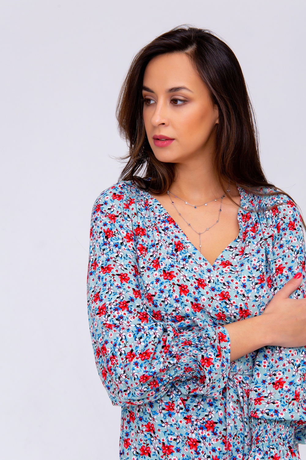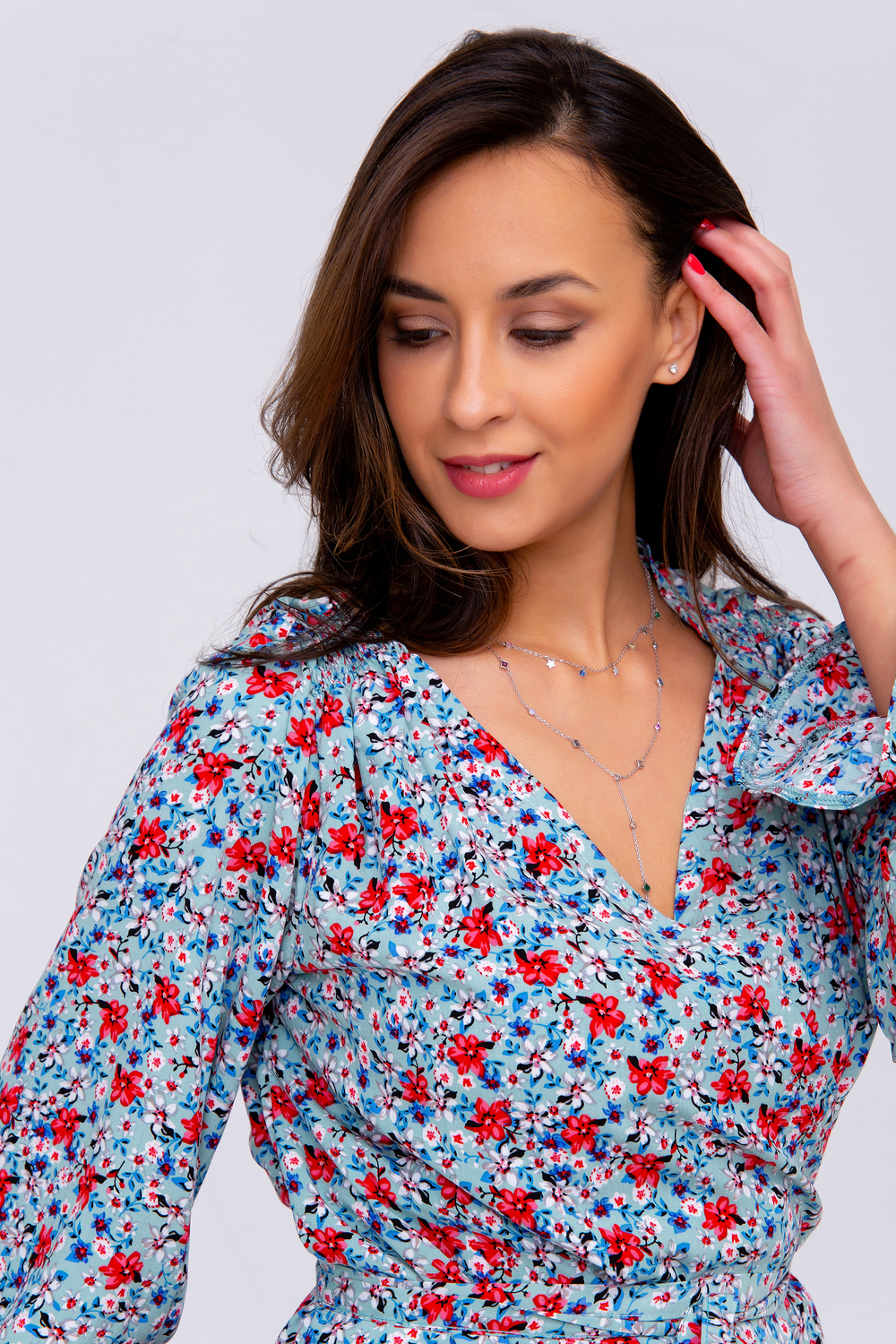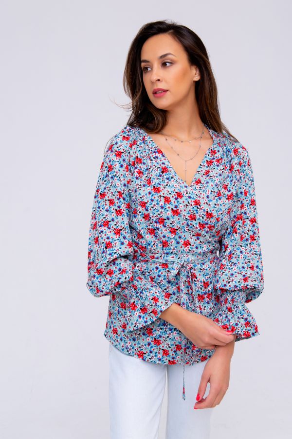 Летняя премиум коллекция от Рапоза! Только трендовые тенденции этого лета: свободные, летящие модели, сочные цвета, натуральные ткани, стильный крой! Цветочный принт подчеркнет вашу женственность, а оригинальный вырез с запахом придаст соблазнительности! Кокетливо выполненные рукава добавят легкости, ведь именно этого больше всего хочется летом. Изысканная блузка в романтическом стиле легко сочетается с прямой юбкой или брюками-дудочками.