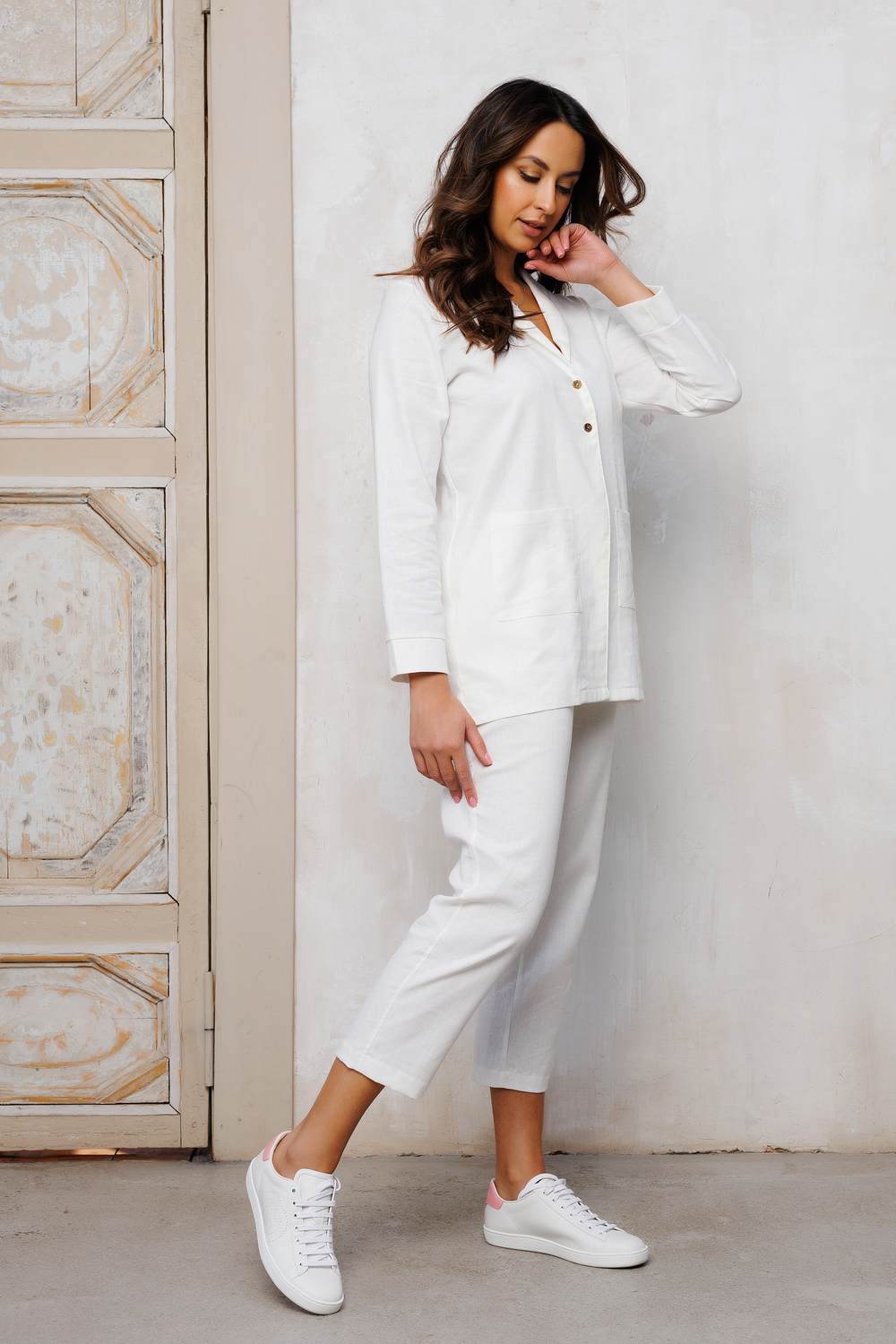 Премиум коллекция от бренда Raposa! Только модные тенденции этого сезона весна-лето: свободные, летящие модели, актуальные цвета, белый, натуральные ткани, стильный крой! Пиджак из льна женский станет неотъемлемой частью вашего гардероба. Выбирайте этот стильный жакет, который сочетается с любыми летними нарядами. Пояс придает ему женственную нотку. Природные оттенки освежают и делают Ваш образ элегантным и модным! Пиджак женский оверсайз с лёгкостью впишется в любой гардероб и станет вашим бесспорным фаворитом. Пиджак удлиненный или как его еще можно назвать укороченный жакет отлично подойдет для образов в офис, на день рождения. Жакет имеет прямой покрой, кимоно, отлично подойдет как для высоких так и невысоких, полных, беременных и женщин больших размеров плюс сайз. Благодаря дышащему материалу лен, вы будете чувствовать себя комфортно даже в самый жаркий летний день. Большие размеры позволяют подобрать идеальную посадку для каждой женщины. Не отказывайте себе в удовольствии выглядеть стильно и привлекательно - выбирайте льняной жакет или пиджак и создавайте неповторимый образ без усилий. Материал: Лен/вискоза. Состав: 60% лён +40% вискоза.