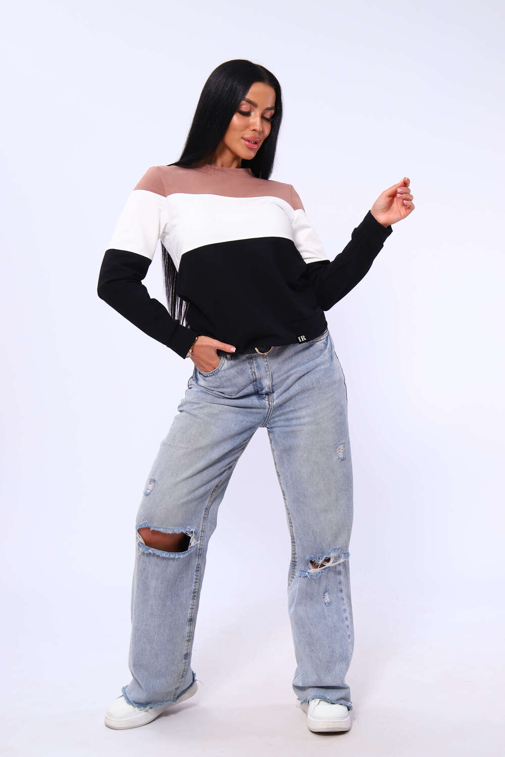Кофта женская оверсайз с яркими вставками - модный тренд сезона. Толстовка подчеркнет вашу индивидуальность, яркие вставки придадут свежести и уверенности. Лонгслив с округлой горловиной с прекрасным сочетанием цветов впишется в ваш гардероб и станет одной из любимых в нем вещей. Женский свитшот оверсайз прямого силуэта без карманов - кофта с длинным рукавом на манжете, не имеет молний и застежек и выполнена из трикотажной ткани - футер 2-х нитка из премиум хлопка. Повседневный молодежный свитшот универсален, поэтому комбинируется с любыми вашими вещами. Удлиненный джемпер можно носить с любой обувью. Домашняя толстовка представлена в широкой цветовой гамме в маленьких и больших размерах, от 42 до 56, поэтому ее можно заказать для девочек, девушек, женщин любого возраста, также подойдет для беременных женщин, идеально подходит для женщин с пышными формами. Универсальная кофта больших размеров подчеркнет ваши достоинства и скроет недостатки. Такая базовая вещь как спортивная толстовка пользуется популярностью на протяжении всех сезонов, так как ее можно носить всегда и везде.
