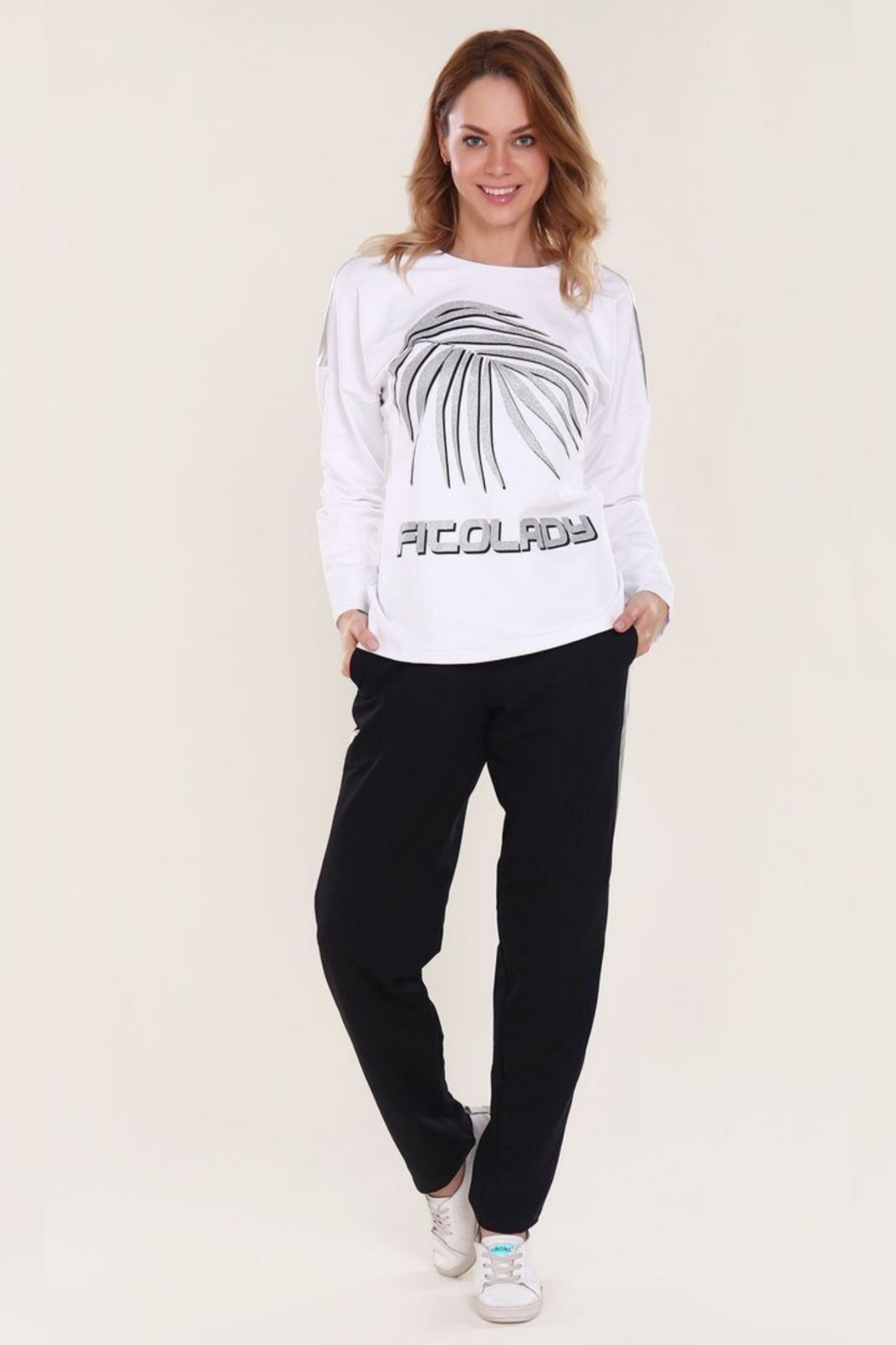 Стильный женский спортивный костюм из натурального футера двухнитки — идеальный выбор для активных и современных женщин! Натуральный хлопок с добавлением безопасной синтетики обеспечивает прочность ткани и отличную посадку по фигуре, сохраняя яркость цвета и качество даже после множества стирок. Комплект включает уютный джемпер с заниженной линией плеча, украшенный изящным растительным принтом, и удобные брюки с поясом на резинке и боковыми карманами, дополненные стильными боковыми полосками. Свободный крой подходит для любого типа фигуры и отлично подходит для спорта, отдыха или повседневной носки. Широкий размерный ряд, включая большие размеры, делает этот костюм доступным для каждой женщины. Наслаждайтесь комфортом и стилем каждый день!