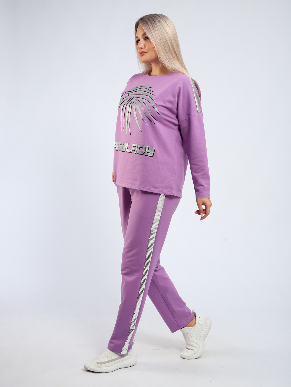 Стильный женский спортивный костюм из натурального футера двухнитки — идеальный выбор для активных и современных женщин! Натуральный хлопок с добавлением безопасной синтетики обеспечивает прочность ткани и отличную посадку по фигуре, сохраняя яркость цвета и качество даже после множества стирок. Комплект включает уютный джемпер с заниженной линией плеча, украшенный изящным растительным принтом, и удобные брюки с поясом на резинке и боковыми карманами, дополненные стильными боковыми полосками. Свободный крой подходит для любого типа фигуры и отлично подходит для спорта, отдыха или повседневной носки. Широкий размерный ряд, включая большие размеры, делает этот костюм доступным для каждой женщины. Наслаждайтесь комфортом и стилем каждый день!
