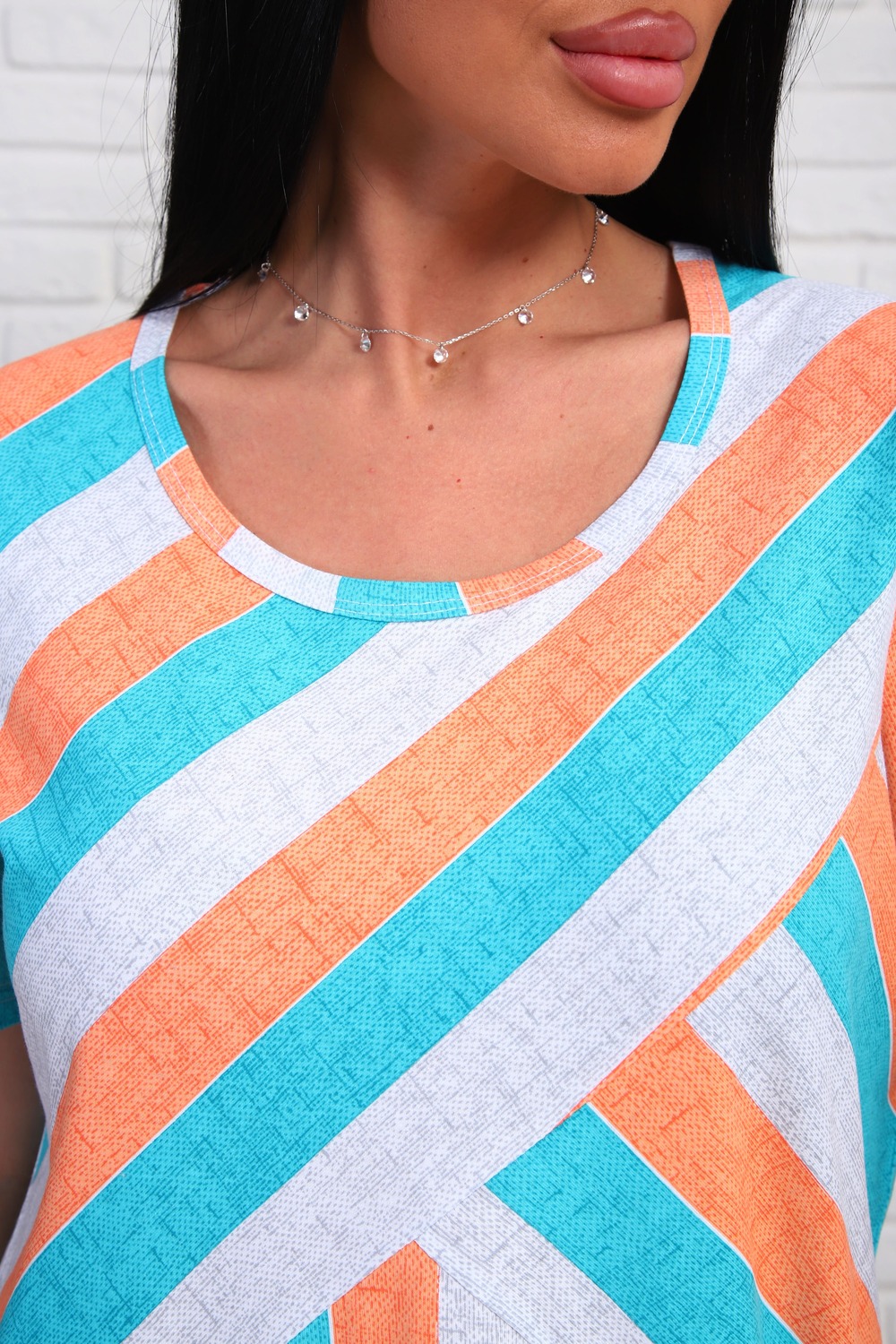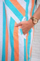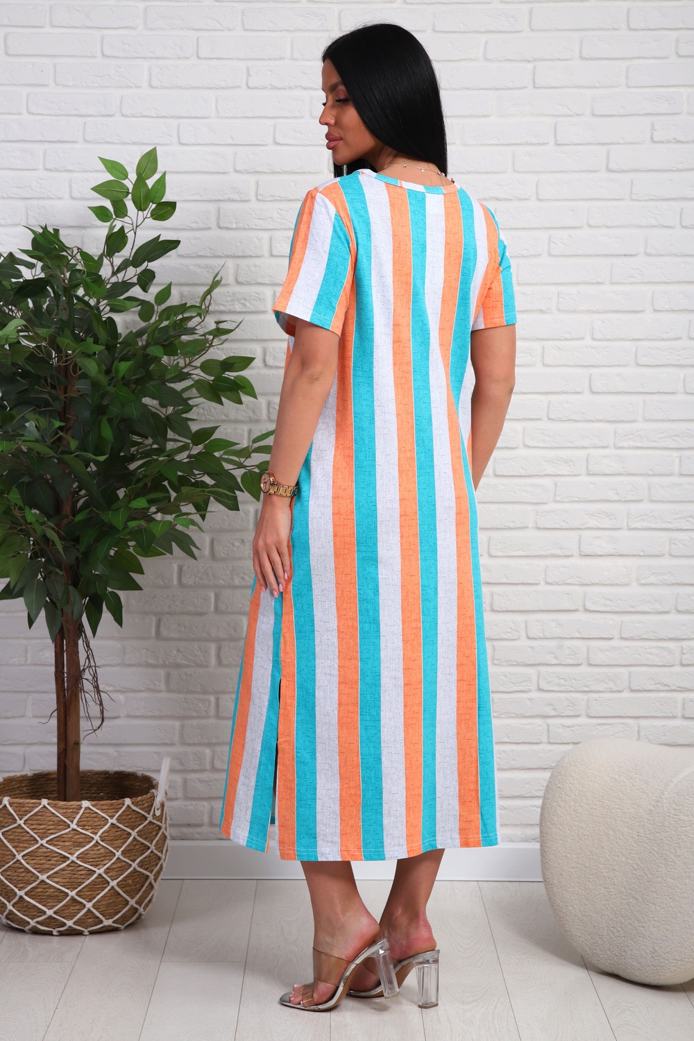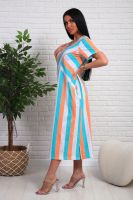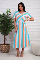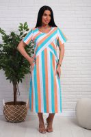 Платье из натурального набивного трикотажа. Силуэт прямой. Длина миди. Рукав короткий. Горловина круглая. На полочке фигурные подрезы. Карманы и разрезы в боковых швах.