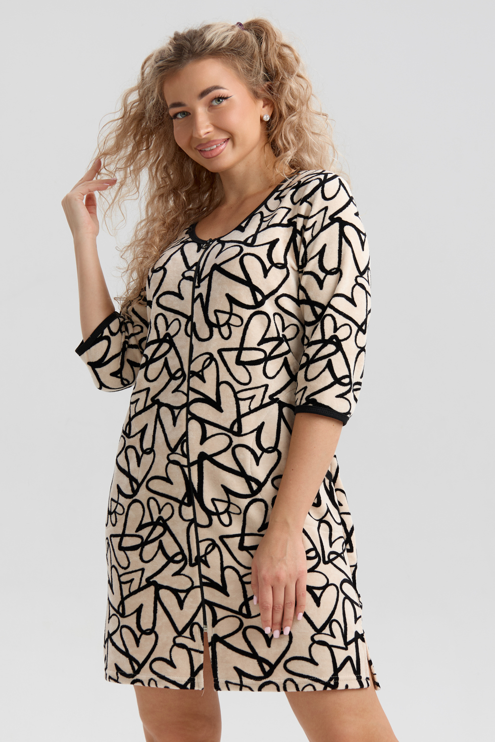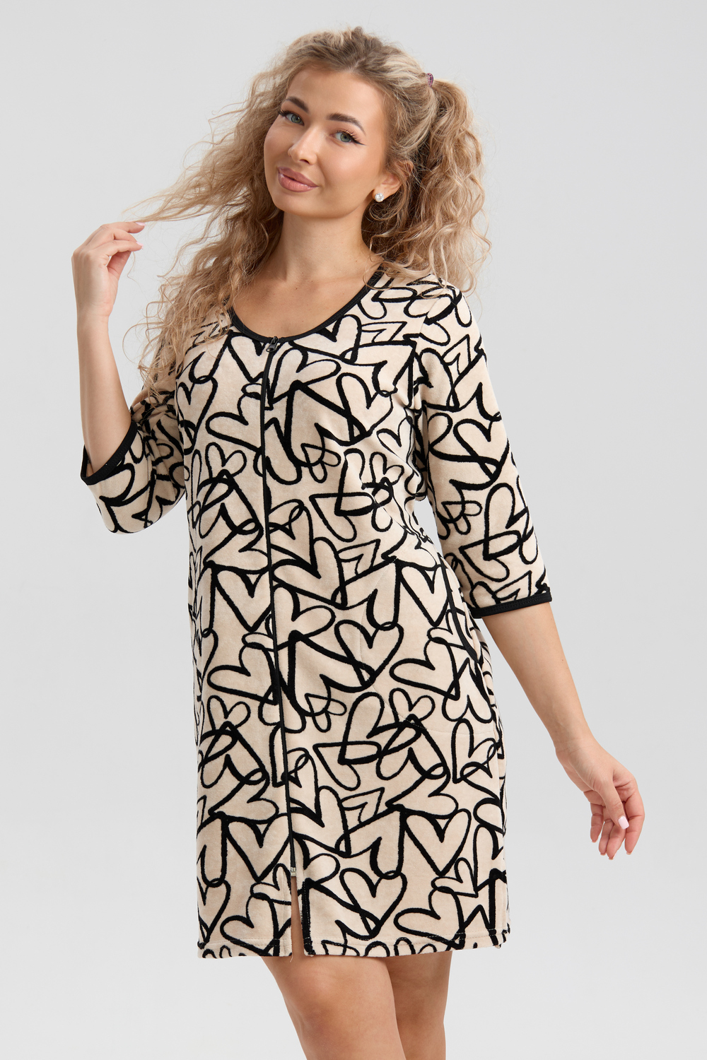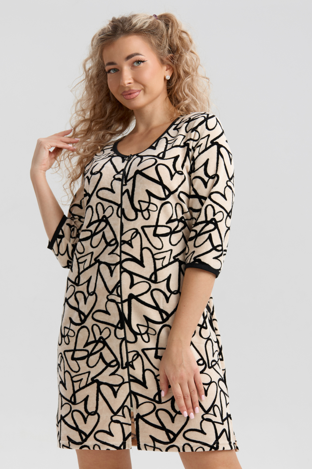 Женский укороченный халатик выполнен из качественного велюра и модного дизайна. Велюр практичен, прост в уходе и использовании. Обладает высокой устойчивостью к механическим повреждениям. Ему свойственны характеристики натуральных тканей, что делает его использование комфортным. Материал гигроскопичен, хорошо пропускает воздух и сохраняет тепло. Кроме этого он не меняет форму и не вызывает аллергических реакций. Отличается мягкостью и приятной на ощупь текстурой. Материал прекрасно дышит. Носить такой халатик Вы сможете в любое время года. Надёжный замок на молнии сохраняет свои свойства в течении всего времени использования. Женственный вырез, поясок и 2 боковых кармана добавляют образу шарм и делают изделие удобным и практичным. Изысканный, в меру длинный халат подойдёт для любого типа фигуры. А так же будет идеальным подарком на любой праздник: Новый год, день рождения, 8 марта, 14 февраля. Рекомендуется стирать в деликатном режиме 30 °С. Это поможет сохранить качество изделия на долгое время.