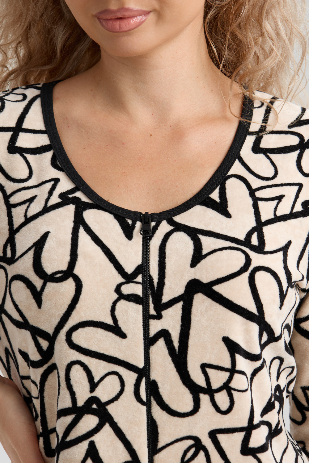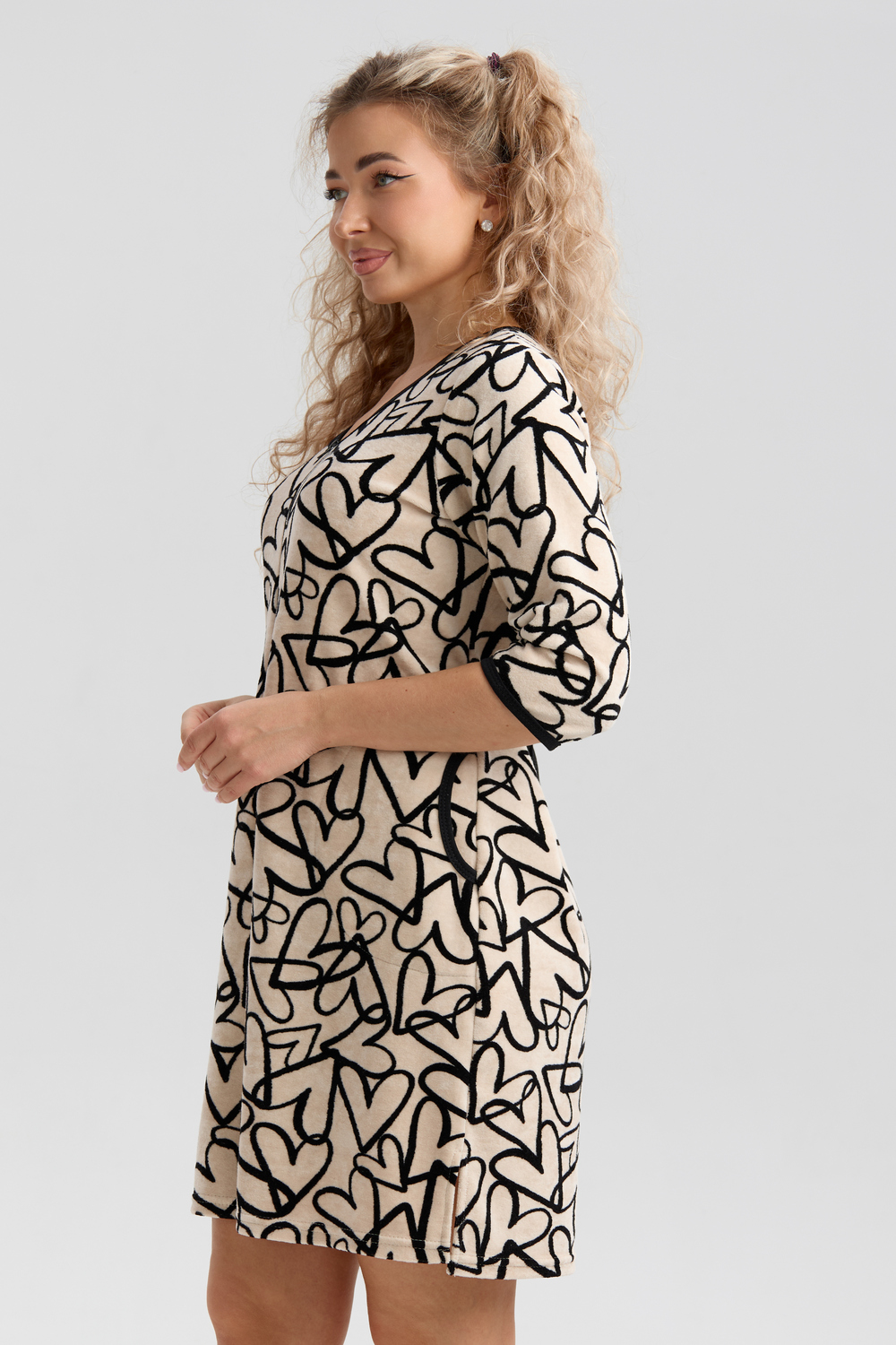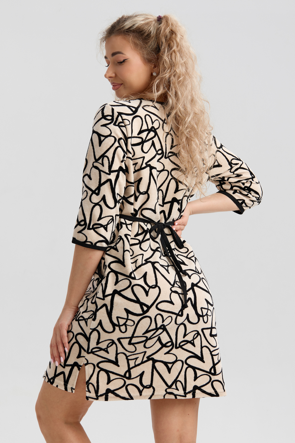 Женский укороченный халатик выполнен из качественного велюра и модного дизайна. Велюр практичен, прост в уходе и использовании. Обладает высокой устойчивостью к механическим повреждениям. Ему свойственны характеристики натуральных тканей, что делает его использование комфортным. Материал гигроскопичен, хорошо пропускает воздух и сохраняет тепло. Кроме этого он не меняет форму и не вызывает аллергических реакций. Отличается мягкостью и приятной на ощупь текстурой. Материал прекрасно дышит. Носить такой халатик Вы сможете в любое время года. Надёжный замок на молнии сохраняет свои свойства в течении всего времени использования. Женственный вырез, поясок и 2 боковых кармана добавляют образу шарм и делают изделие удобным и практичным. Изысканный, в меру длинный халат подойдёт для любого типа фигуры. А так же будет идеальным подарком на любой праздник: Новый год, день рождения, 8 марта, 14 февраля. Рекомендуется стирать в деликатном режиме 30 °С. Это поможет сохранить качество изделия на долгое время.