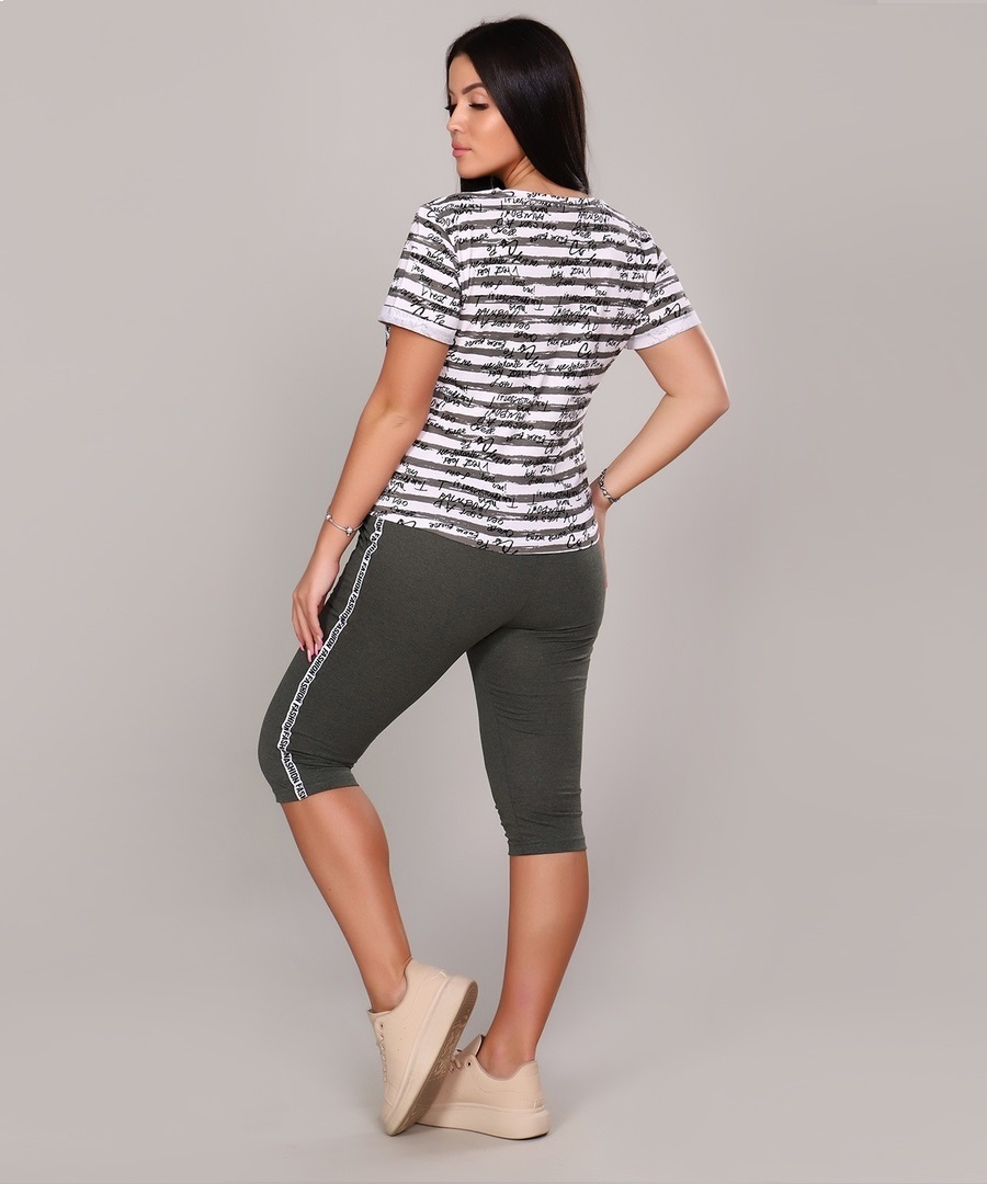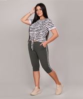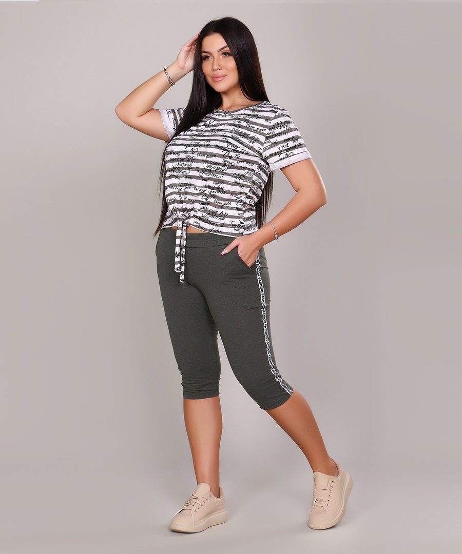 Этот костюм действительно универсален! Он отлично подойдет для различных активностей, будь то пробежка, занятия домашними делами или прогулка с детьми. Кулирная гладь из хлопка обеспечивает комфорт и воздухопроницаемость, что особенно важно во время физической активности или прогуливаясь в жаркую погоду. Укороченная футболка с декоративным узлом добавляет стиль и оригинальность, а бриджи с карманами и эластичным поясом обеспечивают свободу движений и практичность. Такой комплект станет отличным выбором для активного образа жизни! Размер 44: футболка: длина:50 см; ширина:46 см. бриджи: длина внеш.шва:62 см; длина внут.шва:41 см;ширина по бедрам:47 см. Размер 46: футболка: длина:50 см; ширина:48 см. бриджи: длина внеш.шва:62 см; длина внут.шва:41 см;ширина по бедрам :47 см. Размер 48: футболка: длина:54 см; ширина:51 см. бриджи: длина внеш.шва:63 см; длина внут.шва:41 см;ширина по бедрам :48 см. Размер 50: футболка: длина:54 см; ширина:51 см. бриджи: длина внеш.шва:63 см; длина внут.шва:41 см; ширина по бедрам:48 см. Размер 52: футболка: длина:56 см; ширина:53 см. бриджи: длина внеш.шва:62 см; длина внут.шва:41 см; ширина по бедрам:48 см. Размер 54: футболка: длина:56 см; ширина:55 см. бриджи: длина внеш.шва:62 см; длина внут.шва:41 см; ширина по бедрам:49 см.