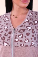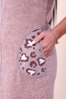 Этот уютный женский халат — идеальное сочетание комфорта и практичности. Модель выполнена в современном стиле из мягкой махры, которая отлично впитывает влагу и позволяет коже «дышать». Ключевые характеристики: Материал: Качественное махровое полотно (состав: 80% хлопок, 20% полиэстер). Добавление п/э делает изделие износостойким: халат не теряет форму и не грубеет после многочисленных стирок. Дизайн: Эффектная комбинация материалов. Верхняя часть с карманами украшена набивным леопардовым принтом, а основная выполнена из однотонной махры, что создает гармоничный и свежий образ. Крой: Практичная застежка на молнии позволяет быстро надевать и снимать халат. Удобный рукав 3/4 не мешает при домашних делах. Детали: Наличие функциональных карманов для необходимых мелочей. Этот халат подарит ощущение домашнего уюта и станет отличным подарком для ценительниц качественного трикотажа.