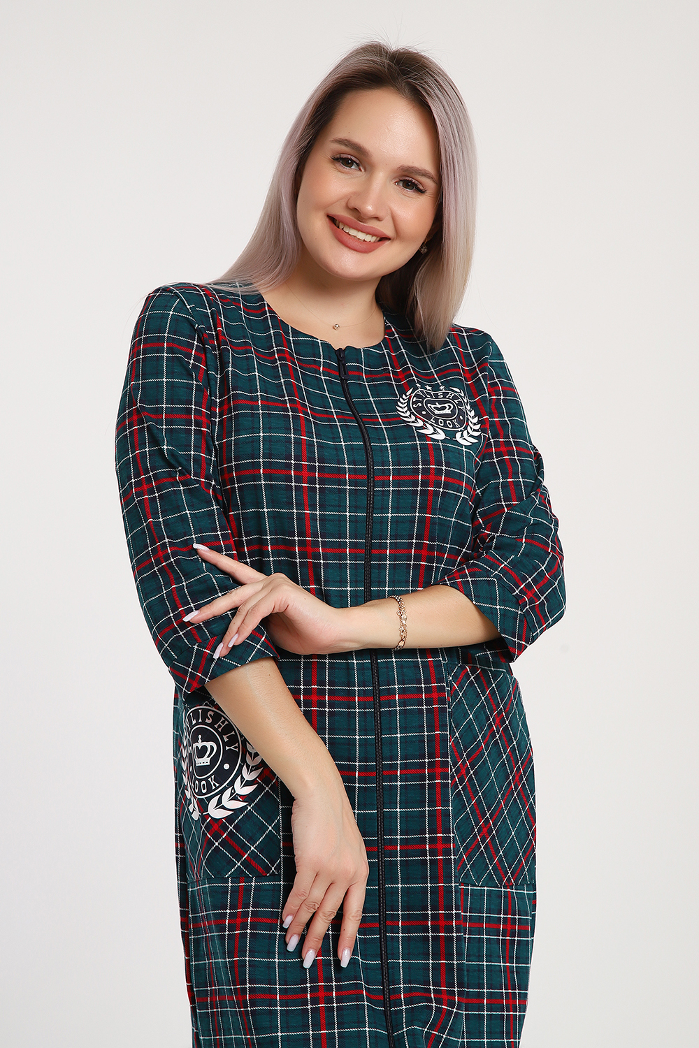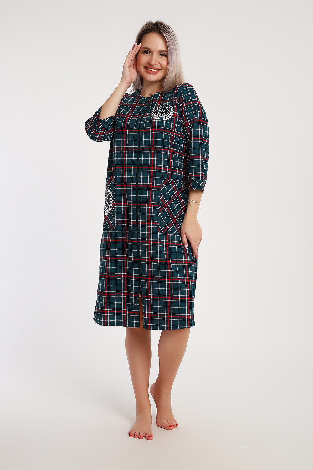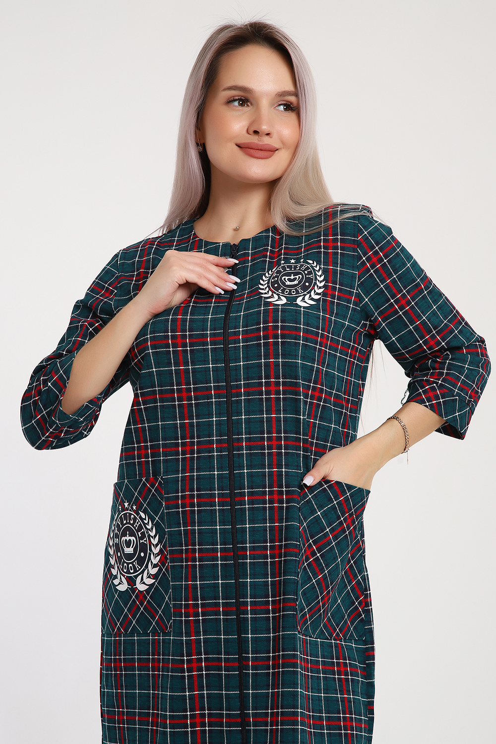 Откройте для себя комфорт и стиль с халатом на молнии в клетку Stylishly Look. Мягкая ткань приятная на ощупь, обеспечивает уют дома и легкость движений. Халат выполнен в классическую клетку, которая сочетает практичность и современный стиль. Особенности: Материал: 100% хлопок мягкий и дышащий. Застежка: практичная молния по всей длине + карман