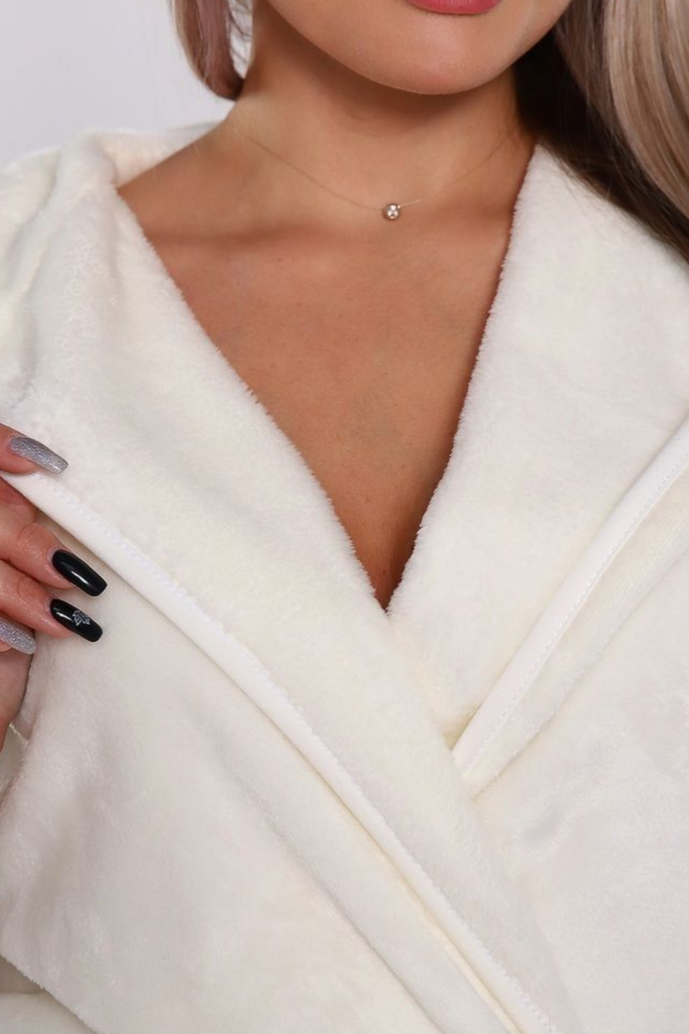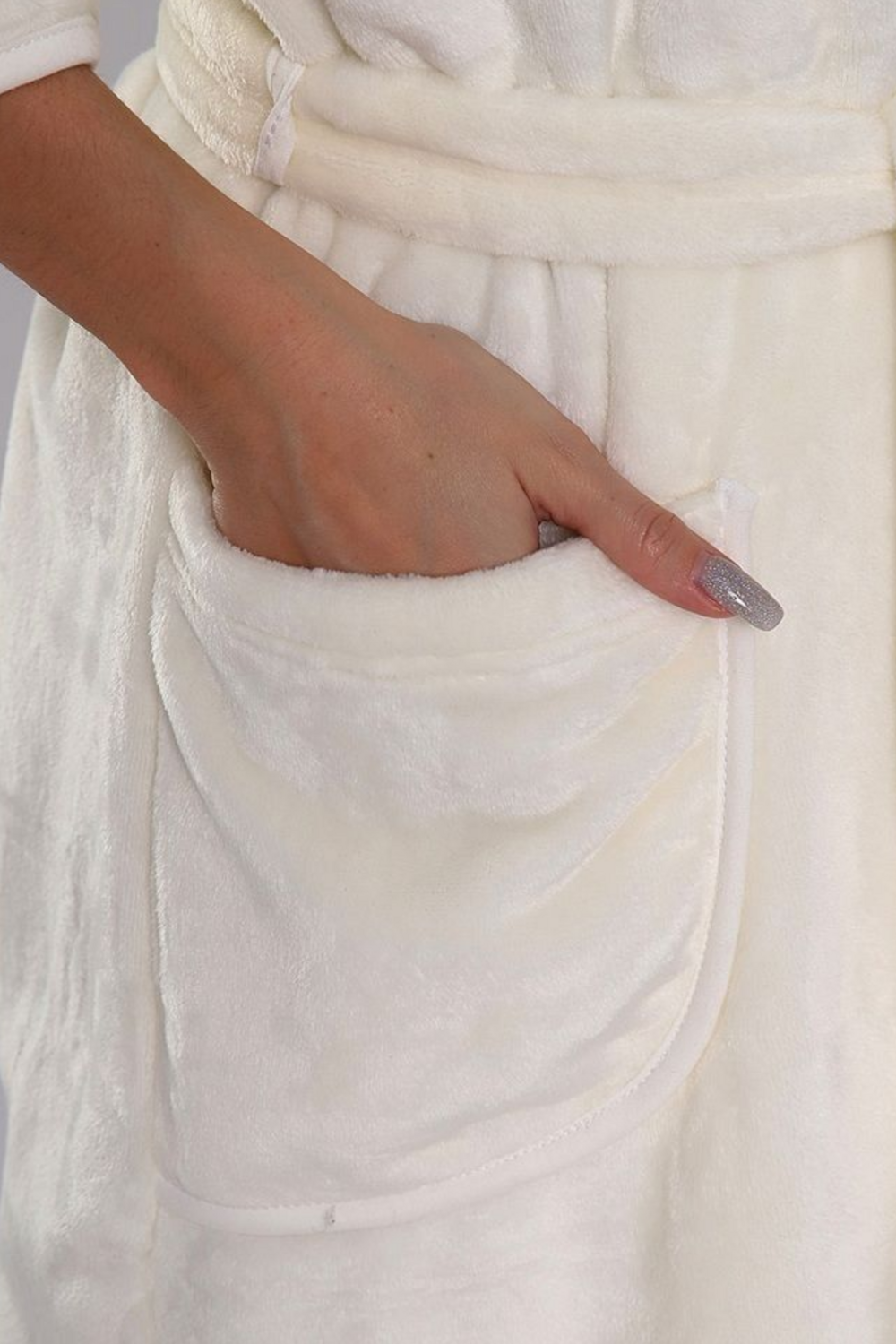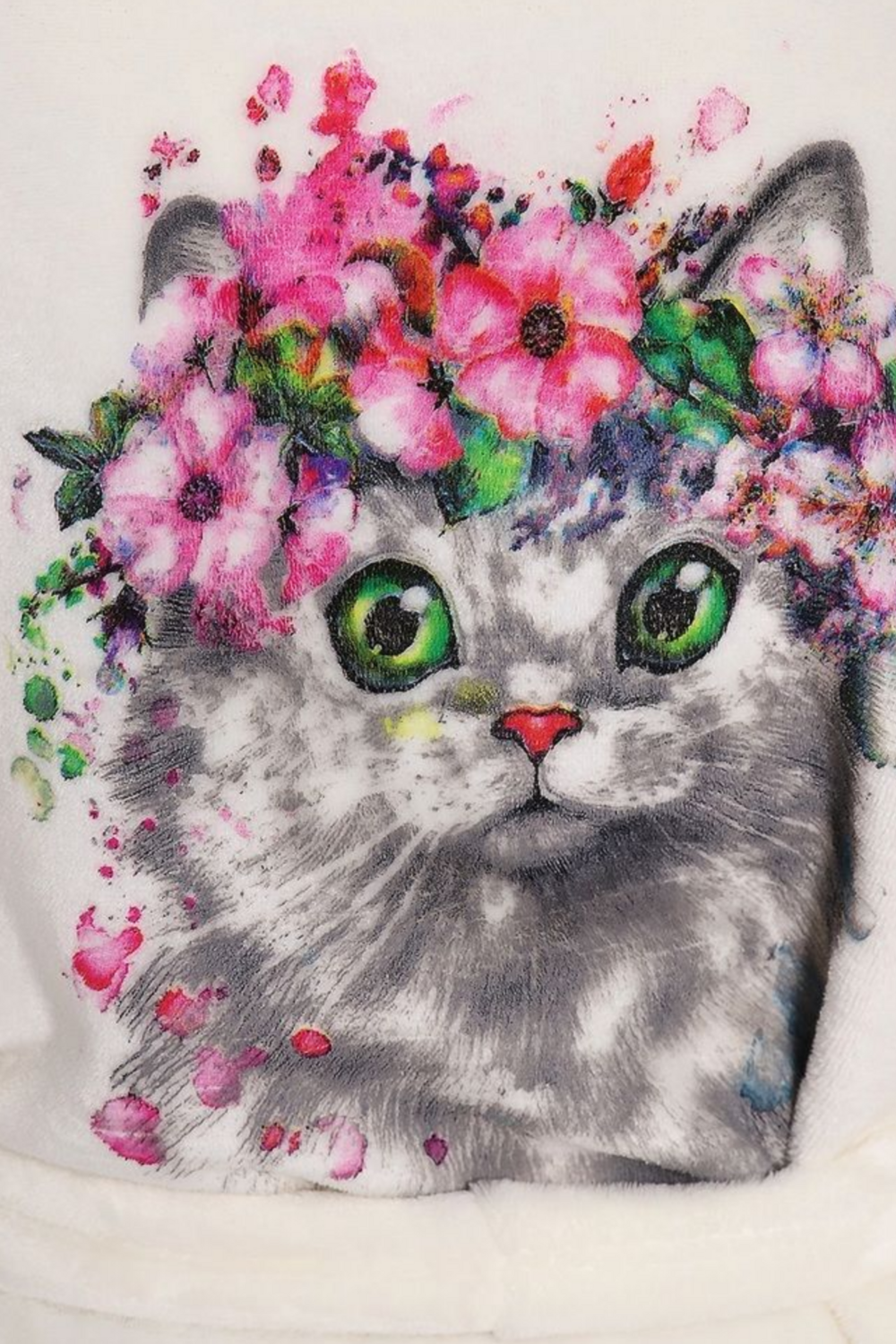 Теплый халат запашной с капюшоном, имеет два кармана и принт "Котенок" на спине.