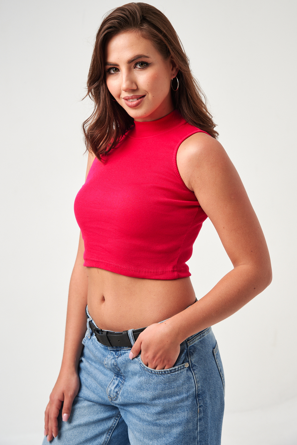 52714 топ укороченный с горлом [малиновый]