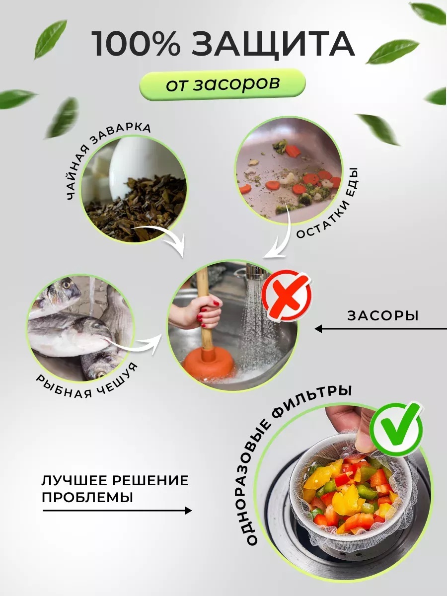 Набор одноразовых фильтров от засоров в раковину 100 штук. Универсальная сетка фильтр на слив в раковину является удобным и эффективным способом предотвратить засорение раковины ванной комнаты или кухни. Она улавливает мелкие частицы и отходы, такие как волосы, пищевые остатки и другие загрязнения / отходы, которые могут попасть в мойку при использовании. После установки, сеточка фильтр начинает свою работу, задерживая загрязнения и предотвращая их попадание в трубы. Ситечко подходит под мусор в раковине. Продлевает срок использования сантехники. Сетка фильтр на раковину, в ванну или душ является эффективным способом поддержания чистоты и предотвращения засоров в ваших трубах. Она также может быть использована как дополнительная защита для сливающихся предметов, таких как кольца или серьги, чтобы они не попали в трубы и не были потеряны. Использование сетки фильтра на раковину является простым и эффективным способом поддержания чистоты и предотвращения засоров в ваших трубах. Кухонный сетчатый чехол для слива/ сливной. Круглый фильтр для воды. Улавливатель волос. Удобная сантехника для ванной и кухни под раковину.