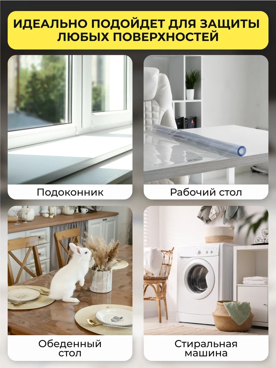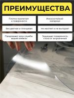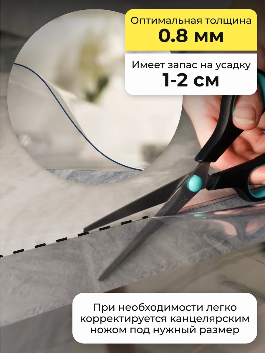 Гибкое стекло – это стильное и практичное решение. Изготовленная из экологичной ПВХ пленки, она не имеет запаха и абсолютно гипоаллергенна, что делает ее безопасной для использования в доме. Толщина 0,8 мм - является оптимальной для защиты поверхностей. Прозрачный, глянцевый материал придает скатерти элегантный вид, а гибкая текстура позволяет легко адаптироваться к любой форме стола. Скатерть гибкое жидкое стекло на стол защитит поверхность или дорогую текстильную скатерть от царапин, пятен и влаги, сохраняя ее первоначальный вид. Ее легко мыть и чистить, что делает ее идеальным вариантом для повседневного использования. Прозрачная клеенка упакована в рулон, легко принимает новую форму и расправляется в течении 5-7 дней при комнатной температуре. Температура использования до +70 и для горячей посуды рекомендуется использовать плейсматы. Гибкое стекло легко подрезается под необходимый размер и форму обычным канцелярским ножом по периметру Вашего стола. Ввиду особенностей материала допустима легкая усадка материала в течение недели, поэтому клеенка поставляется с запасом на усадку +1-2см к указанному номинальному размеру.