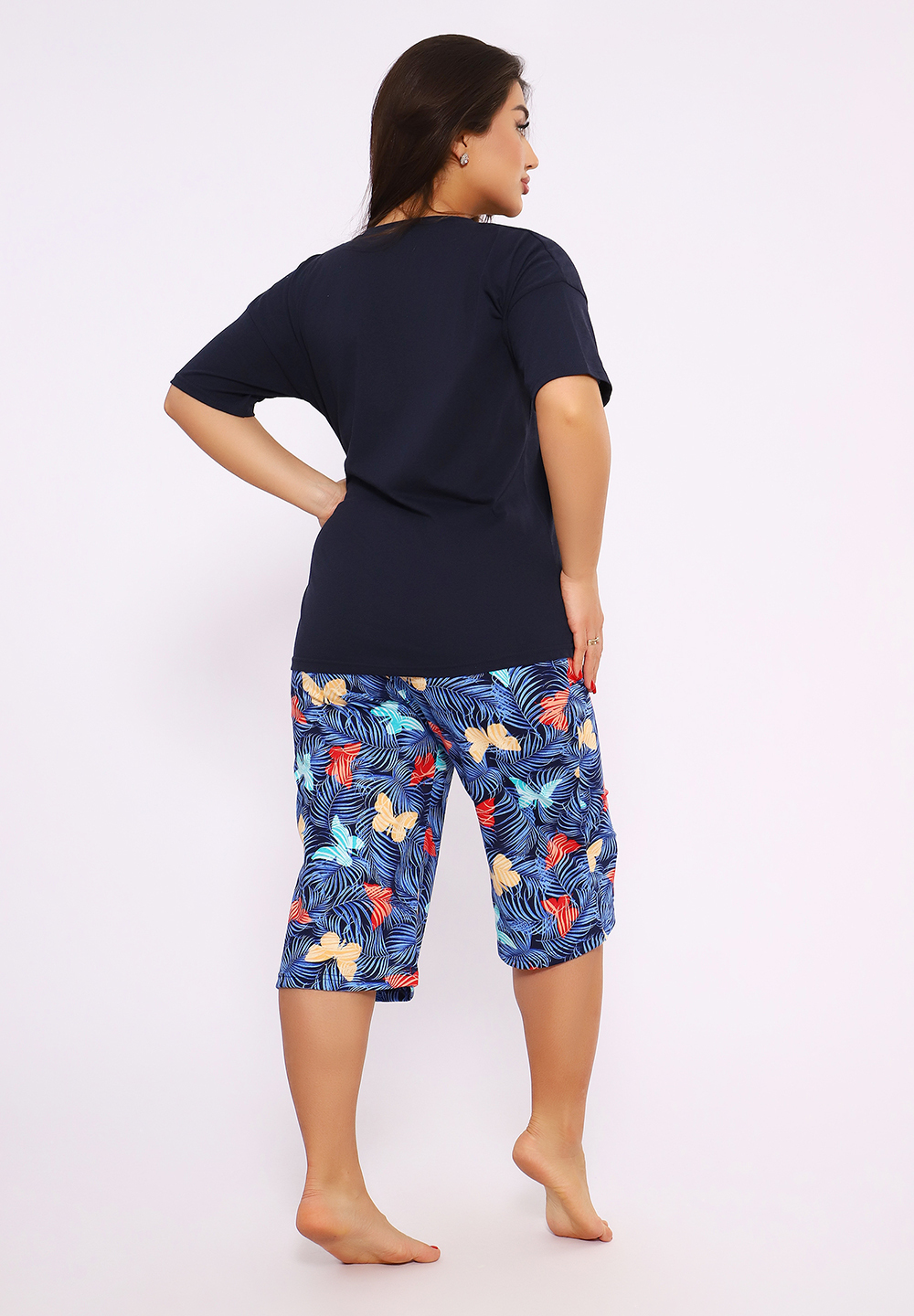 Комплект одежды из хлопка, включающий футболку и бриджи с карманами — это отличный выбор для комфортной и стильной повседневной носки. Хлопок обладает воздухопроницаемыми свойствами, что делает его идеальным для теплой погоды. При выборе такого комплекта стоит обратить внимание на: Дизайн: Футболка однотонная с декорацией. Бриджи свободного фасона из хлопка - с набивным рисунком. Цветовая гамма: Яркая весенне-летняя палитра, то что нужно. Размер: Убедитесь, что выбранный комплект хорошо сидит по размеру, не сковывает движения и комфортен. Уход: Хлопок обычно легко стирать, но стоит соблюдать указания на ярлыке, чтобы избежать усадки или потери цвета. Такой комплект идеально подойдет для прогулок, отдыха или домашнего использования, можно брать с собой на дачу.
