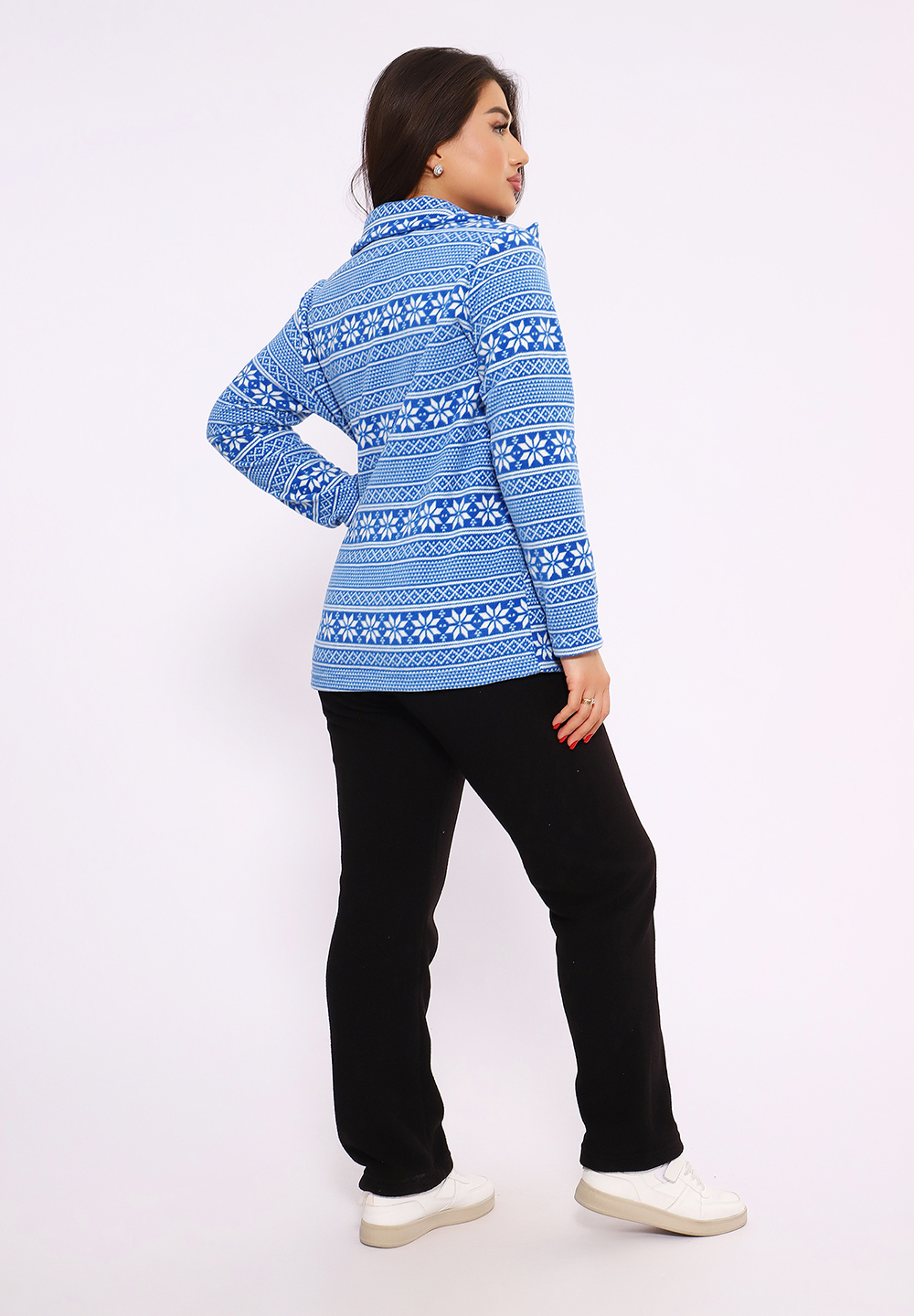 Утепленный флисовый костюм, идеально подходящий для холодной погоды. В комплект входит толстовка с воротником-стойкой на молнии и двумя карманами, выполненная из мягкого и теплого флиса с набивным рисунком, придающим изделию стильный и оригинальный вид. Дополняют образ черные однотонные теплые брюки, обеспечивающие комфорт и тепло в холодные дни. Этот комплект отлично подойдет для активного отдыха, прогулок или повседневной носки в холодное время года.