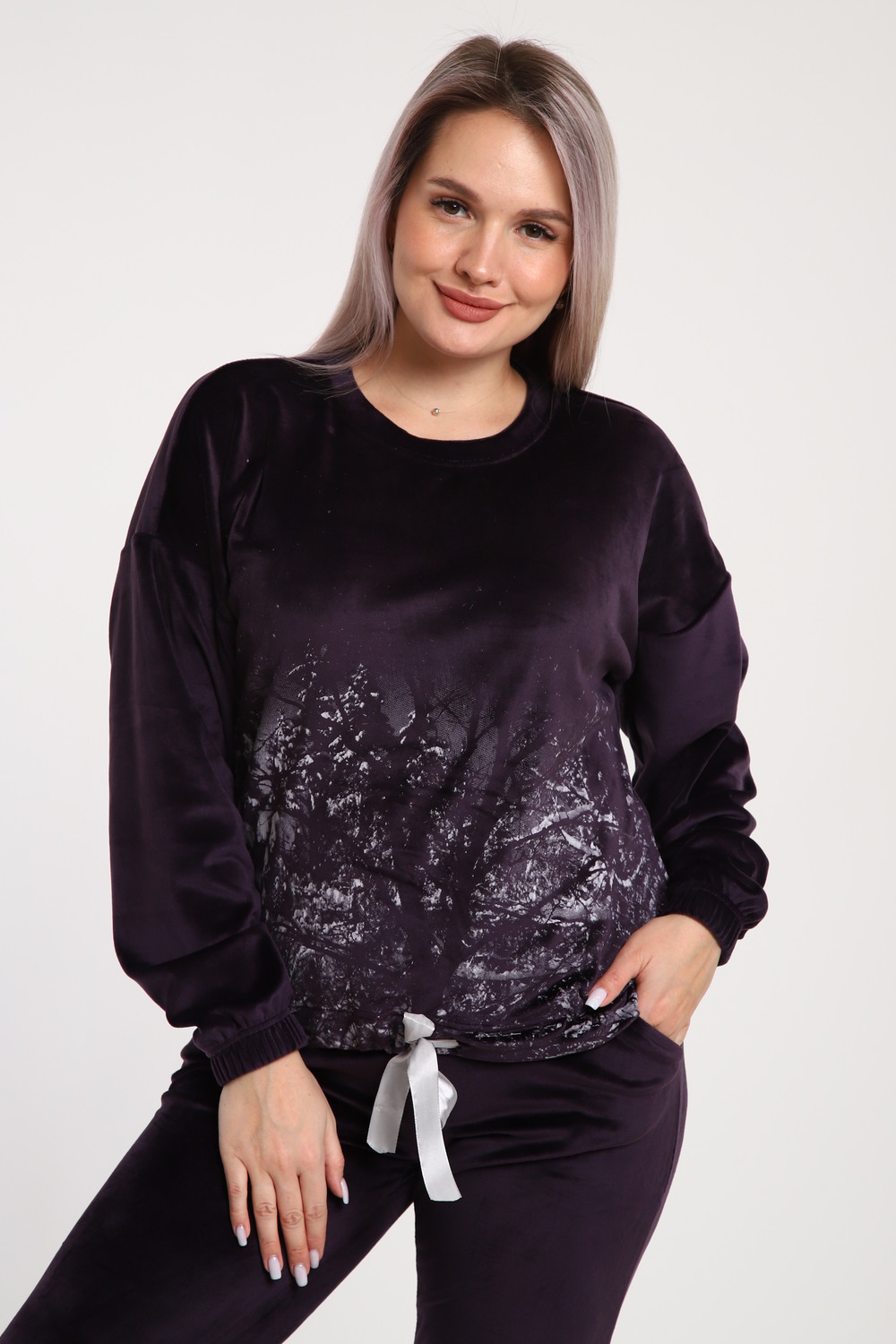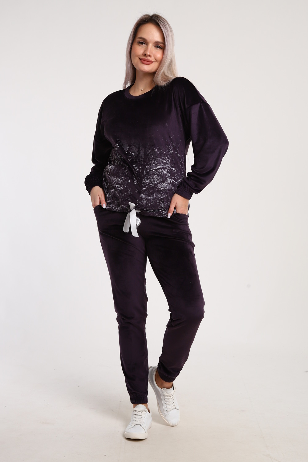 Этот уютный костюм состоит из мягкого свитшота и джоггеров из велюра с принтом "Зимушка". Свитшот выполнен из приятного на ощупь материала, отлично сохраняет форму и создает комфорт. Джоггеры из велюра добавляют образу стильности и уюта, а принт "Зимушка" придает ему оригинальность и зимнее настроение. Идеальный выбор для прогулок, отдыха дома или casual-образа.