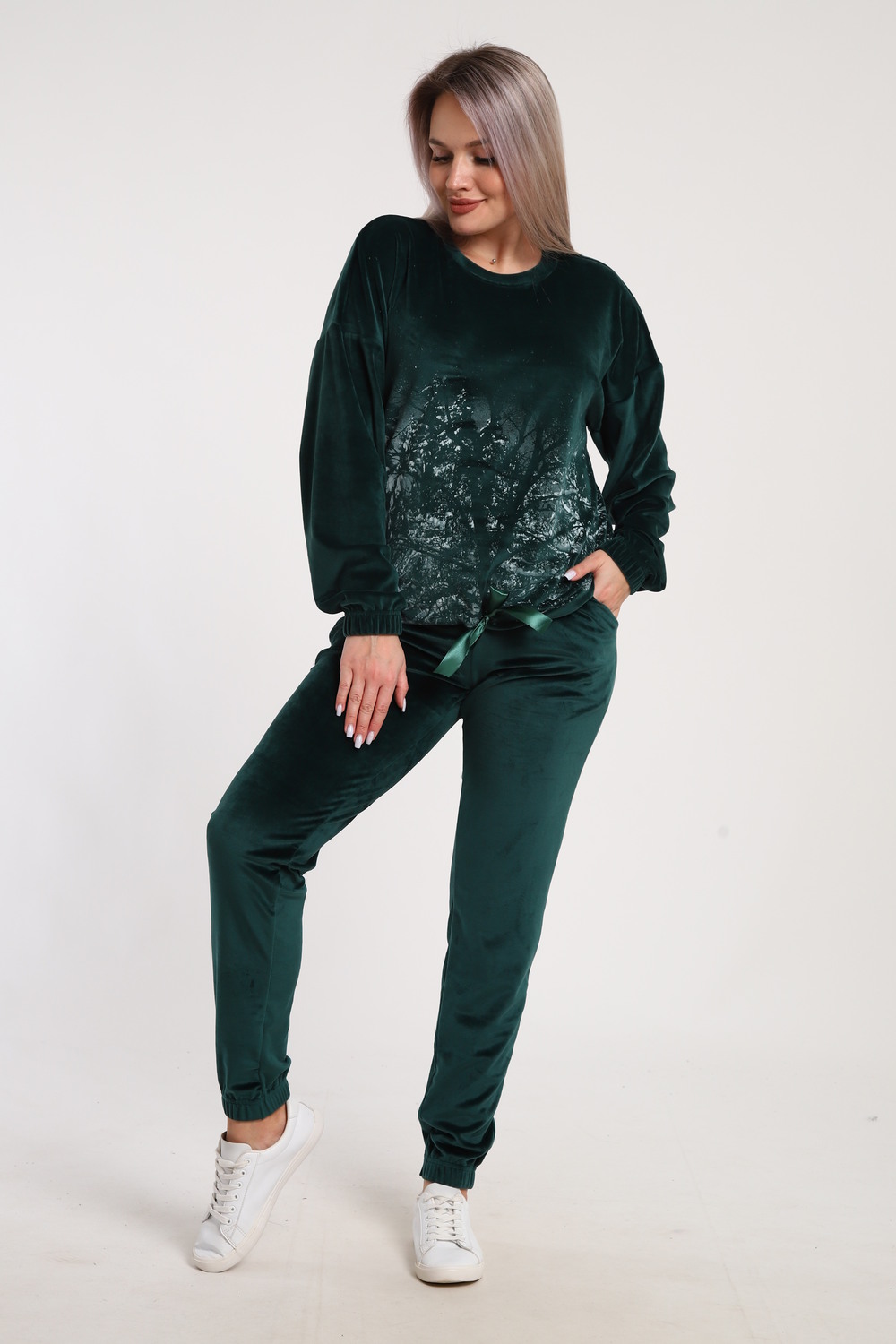 Этот уютный костюм состоит из мягкого свитшота и джоггеров из велюра с принтом "Зимушка". Свитшот выполнен из приятного на ощупь материала, отлично сохраняет форму и создает комфорт. Джоггеры из велюра добавляют образу стильности и уюта, а принт "Зимушка" придает ему оригинальность и зимнее настроение. Идеальный выбор для прогулок, отдыха дома или casual-образа.