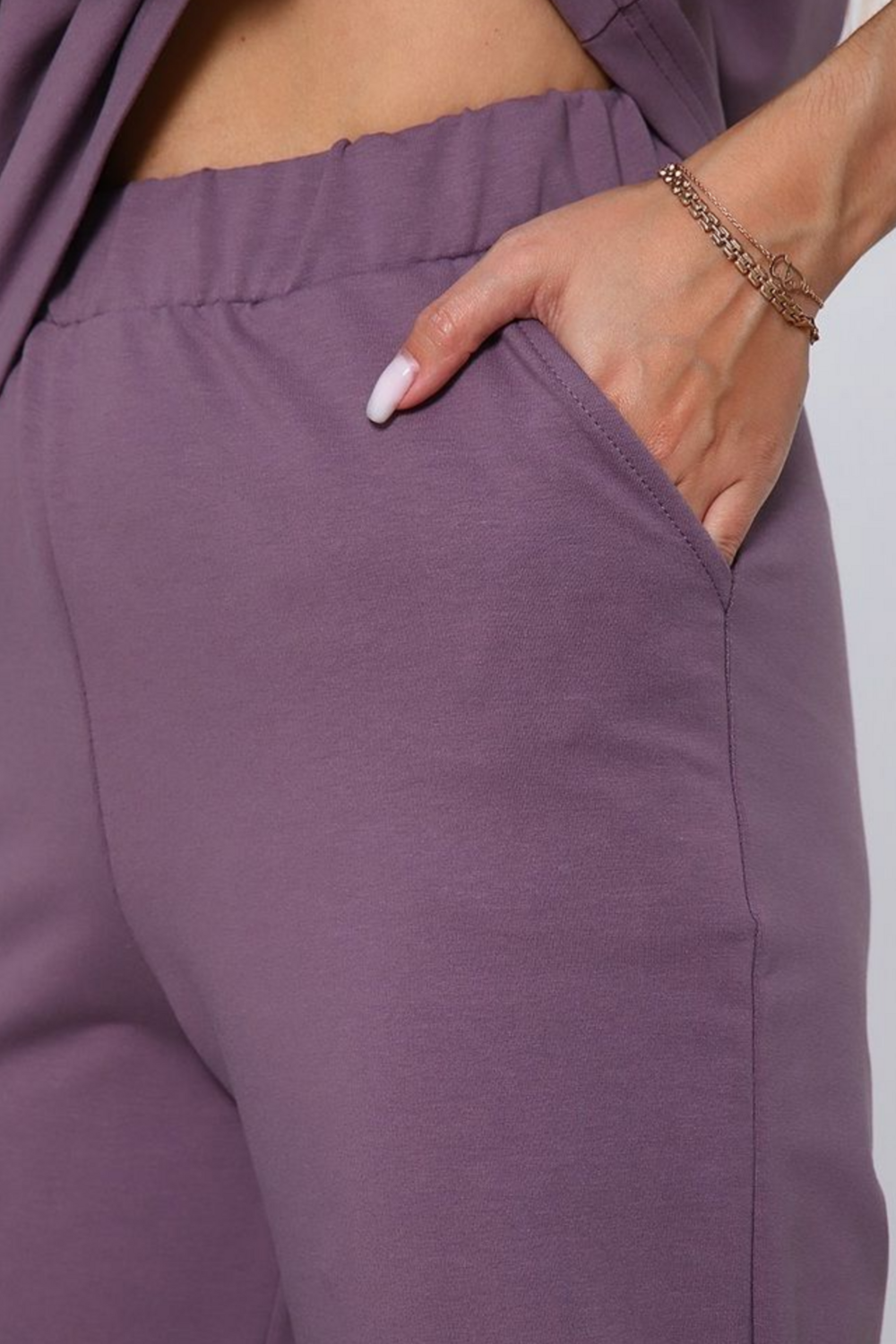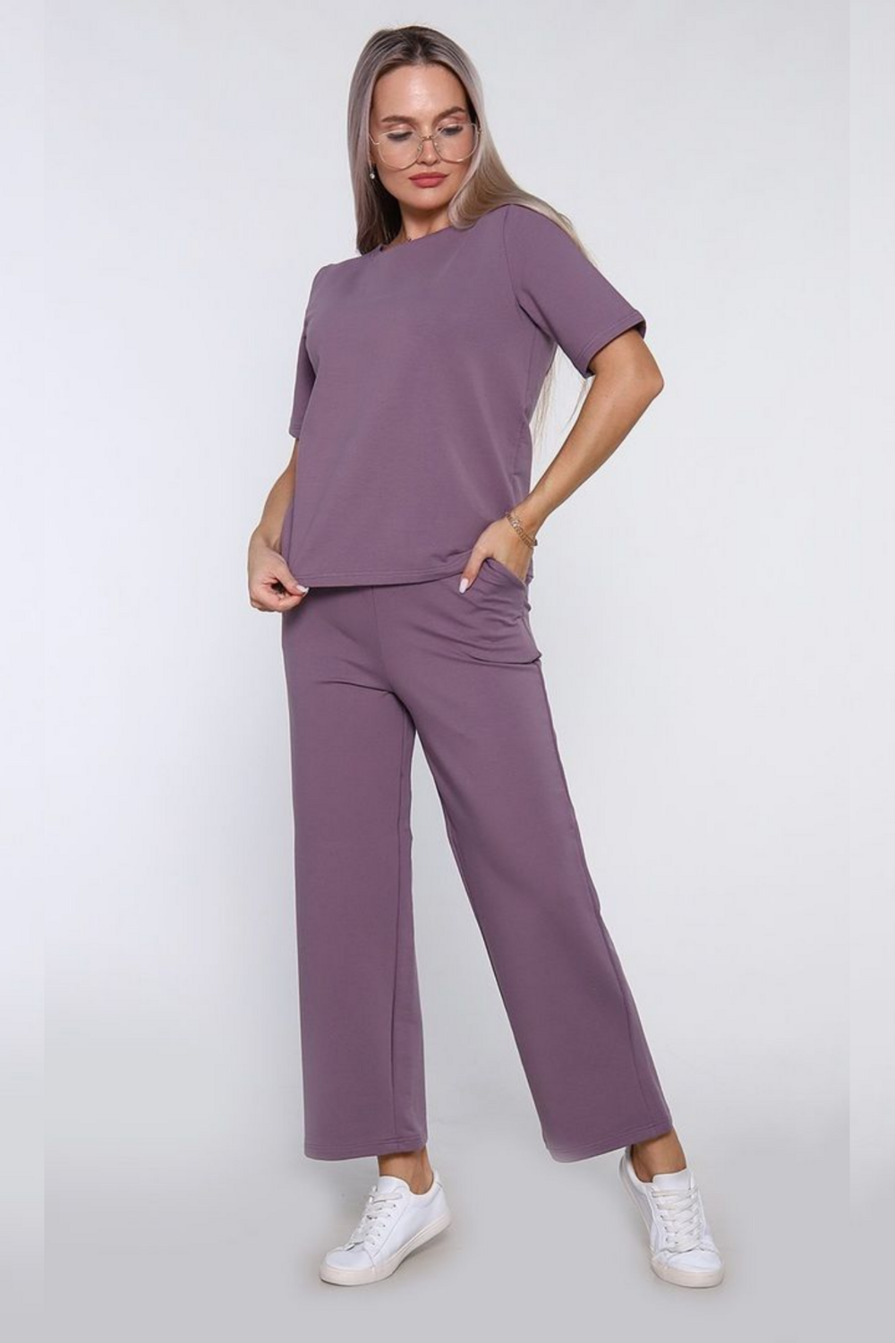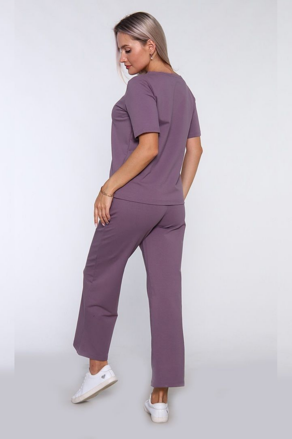 Женский костюм из футера 2-х нитки — это универсальный базовый комплект, подходящий как для повседневных прогулок и активного отдыха, так и для комфортного домашнего ношения. Состав комплекта: Свободная футболка с коротким рукавом и круглым вырезом, а также прямые брюки. Материал: Футер 2-х нитка (обычно 70% хлопок, п/э 24% и 6% эластан). Ткань имеет гладкую лицевую сторону и мягкую петельчатую изнанку. Размерный ряд: 46–56. Детали кроя: Брюки на мягкой резинке, часто дополнены функциональными карманами Комфорт и практичность: Благодаря высокому содержанию хлопка материал «дышит» и приятен к телу, а добавление лайкры позволяет костюму держать форму, не растягиваться и не стеснять движения. Универсальность: Костюм подходит для занятий спортом, прогулок в парке, походов по магазинам или в качестве уютной домашней одежды. Износостойкость: Футер 2-х нитка устойчив к появлению катышков и выдерживает частые стирки, сохраняя первоначальный вид. Этот комплект обеспечивает идеальный баланс между стильным современным образом и ощущением полного комфорта в течение всего дня.