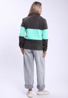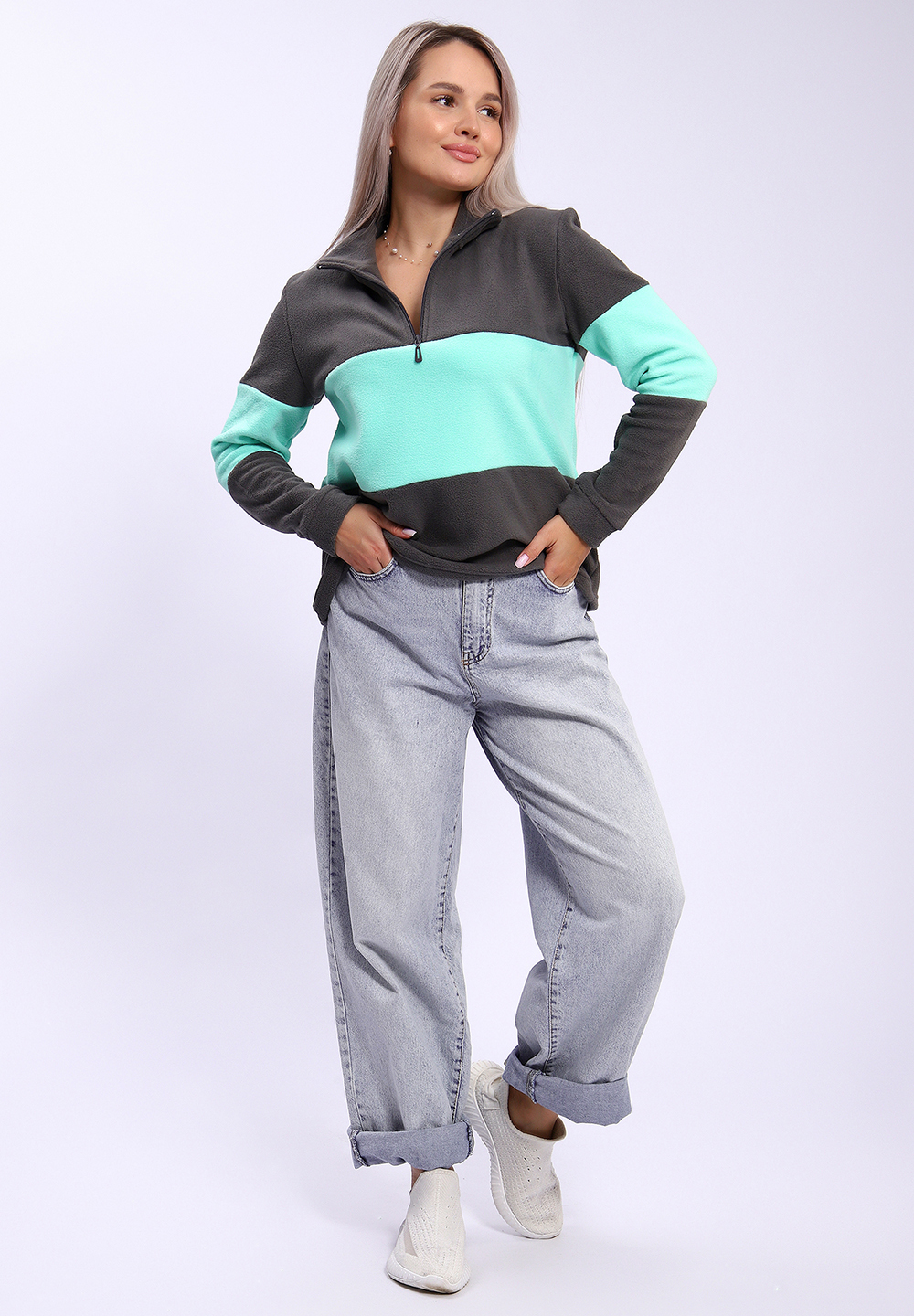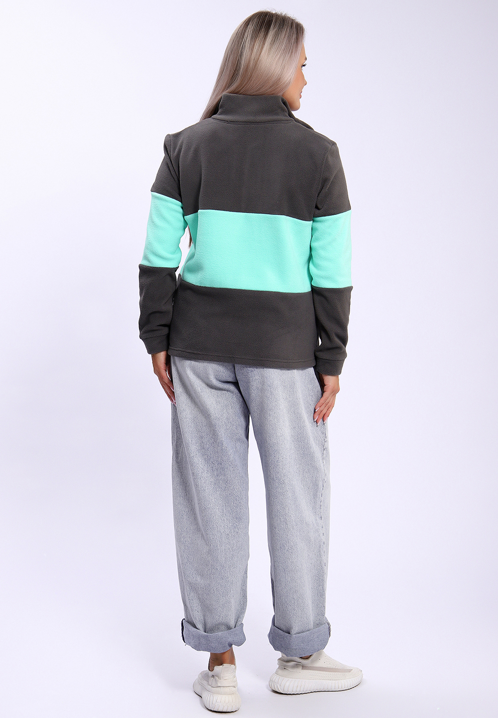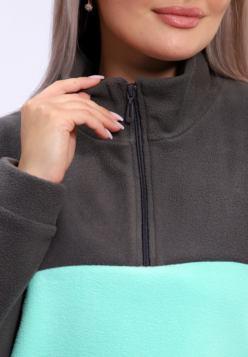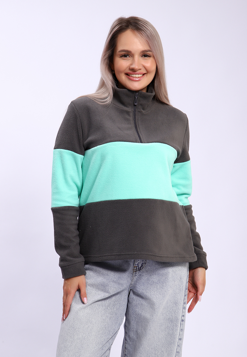 Утепленная толстовка с воротником-стойкой и молнией. Изготовлена из мягкого флиса, обеспечивающего тепло и комфорт. На груди расположена цветная вставка в стиле колор-блок, придающая изделию яркий и современный вид. Идеальный выбор для холодных дней, сочетающий уют и стиль.