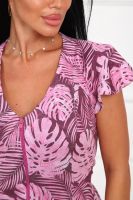 Легкий женский халатик из натурального трикотажа. Приталенный с поясом в боковых швах. Удобные накладные карманы. Расклешённый к низу. Длина миди. Игривый рукав крылышко. Горловина V-образной формы. Для более комфортной посадки на фигуре, на полочках и спинке рельефные швы. Застежка на тесьму молнию.