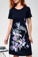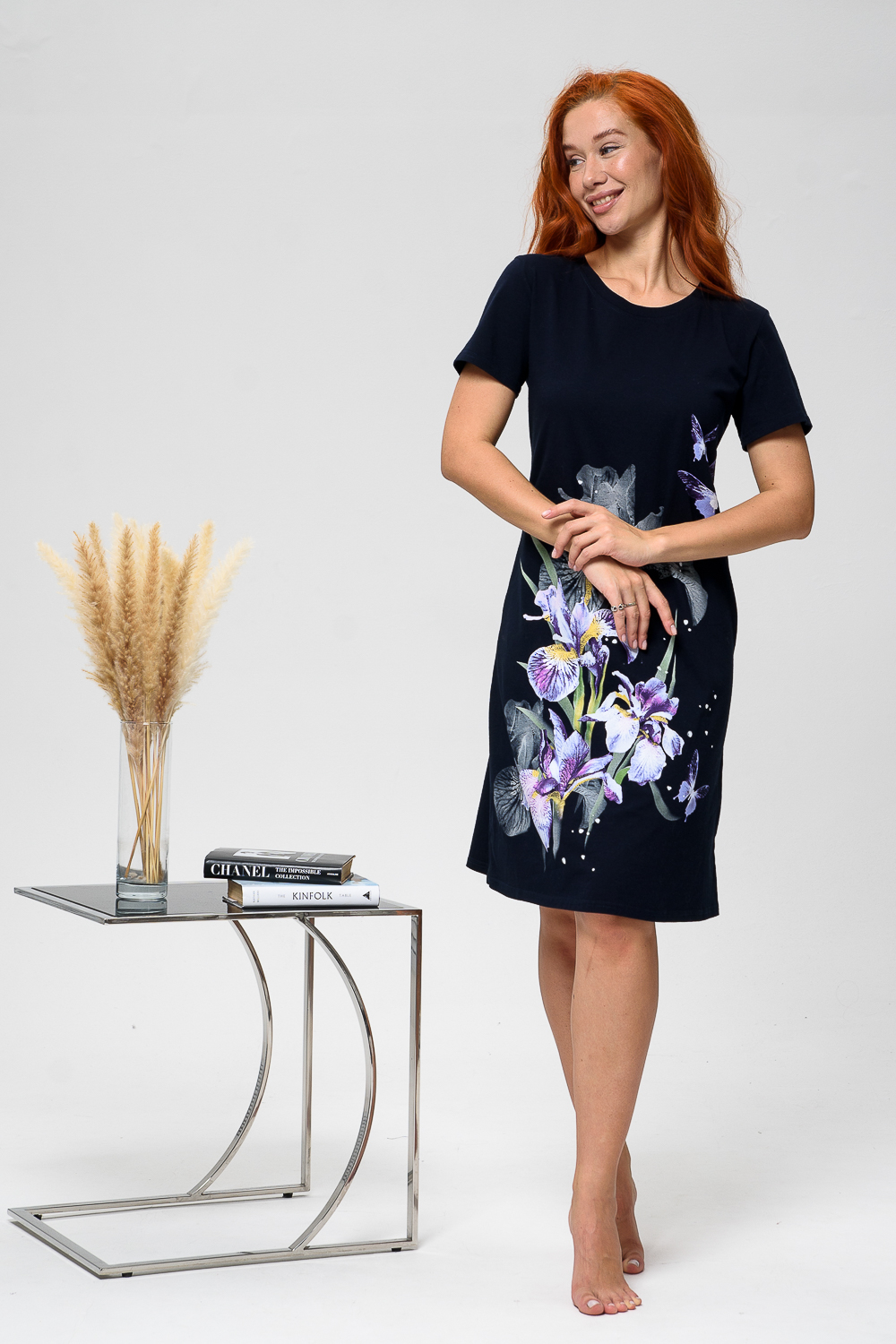 Туника удлиненная женская из 100% хлопка.Модель туники домашней полуприлегающего силуэта.имеет короткий рукав,округлый вырез горловины.Такой фасон отлично смотриться на девушках с пышными формами.Платье-туника подчеркнет вашу женственность и привлекательность.В таком платье удобно отправиться и на прогулку,и на дачу,и за покупками,а можно взять его на море в качестве летней легкой одежды.