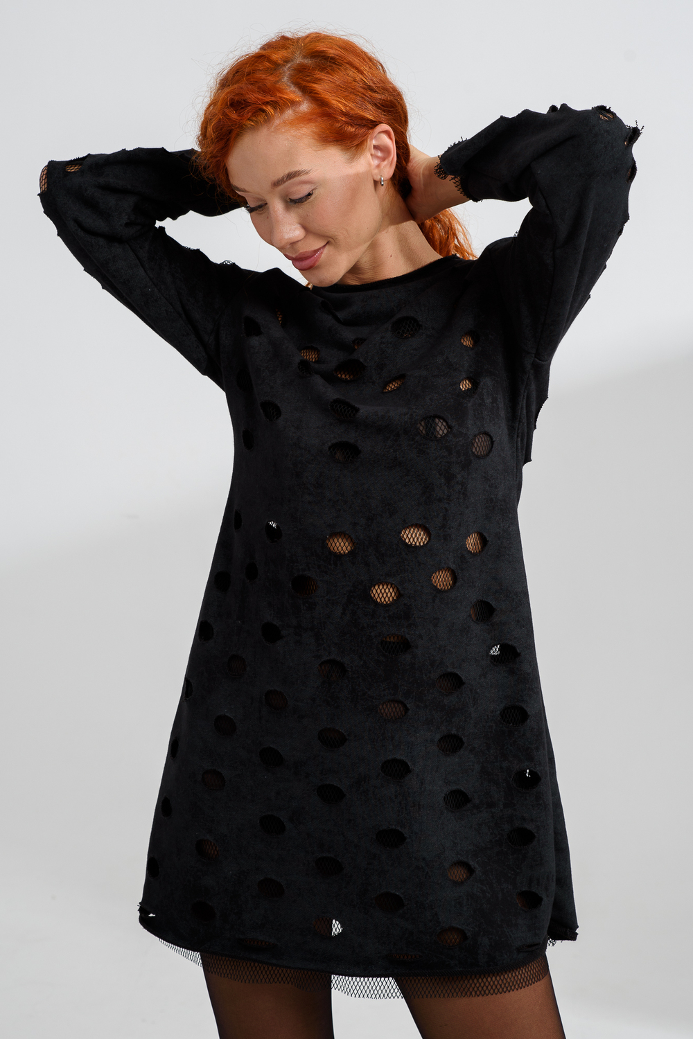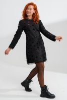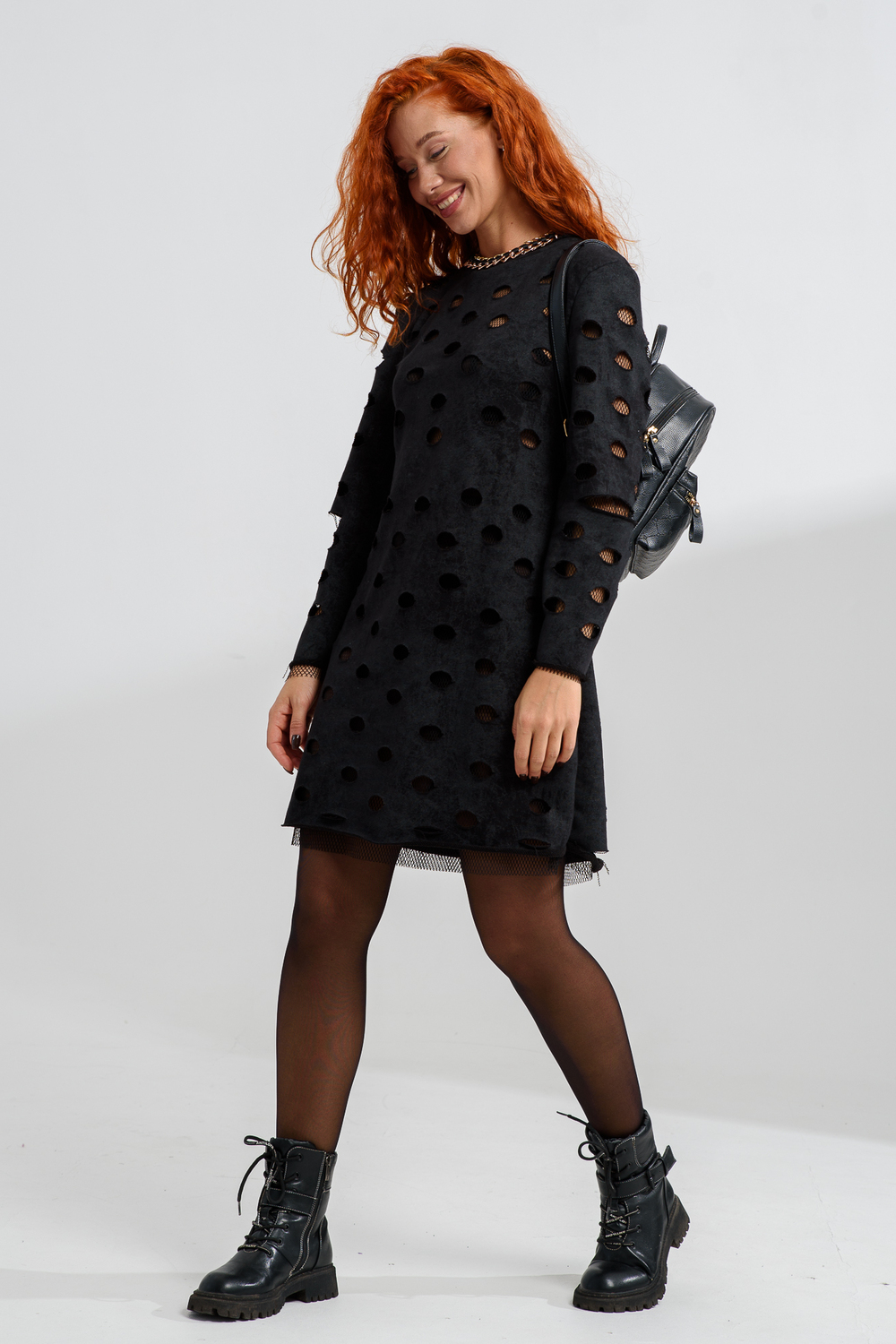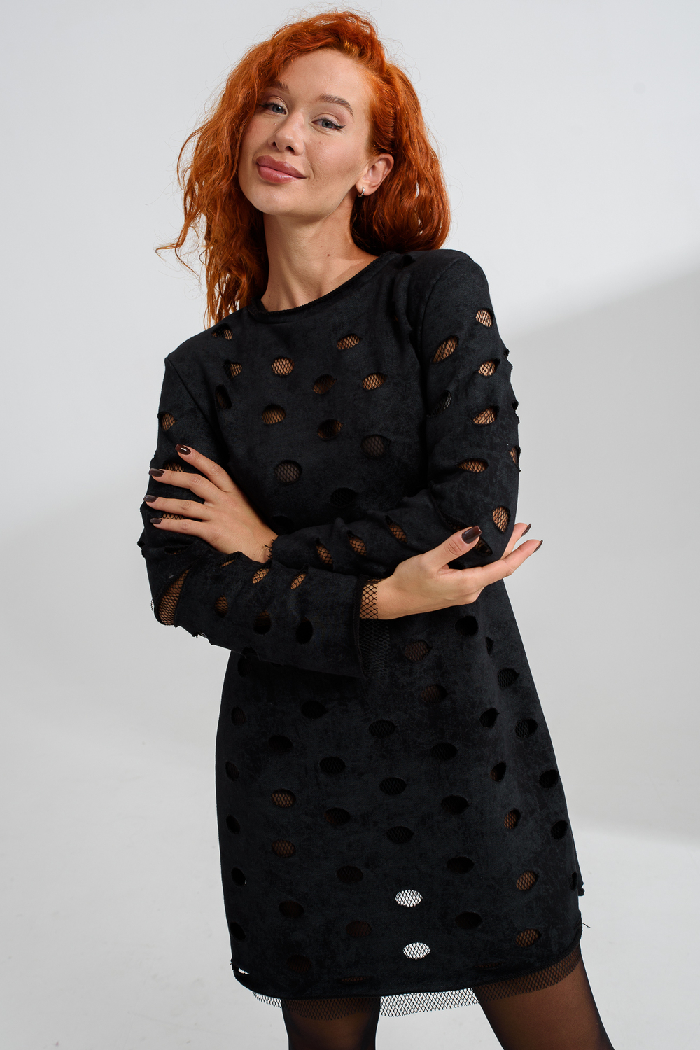 Платье молодежное. Полу прилегающего силуэта с длинными рукавами с подкладкой из сетки.