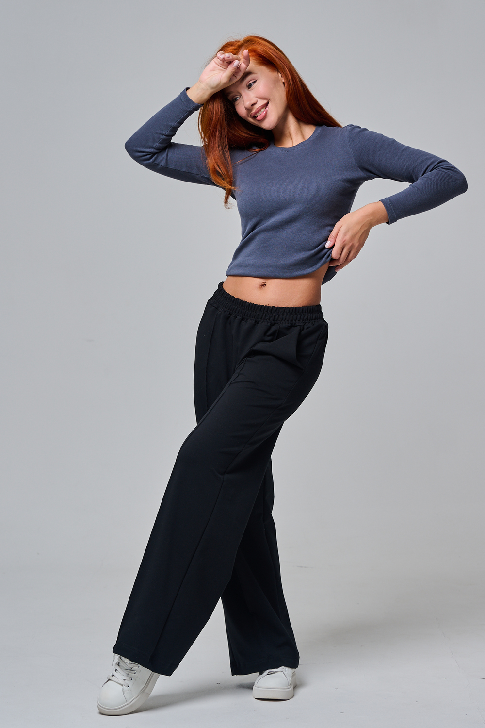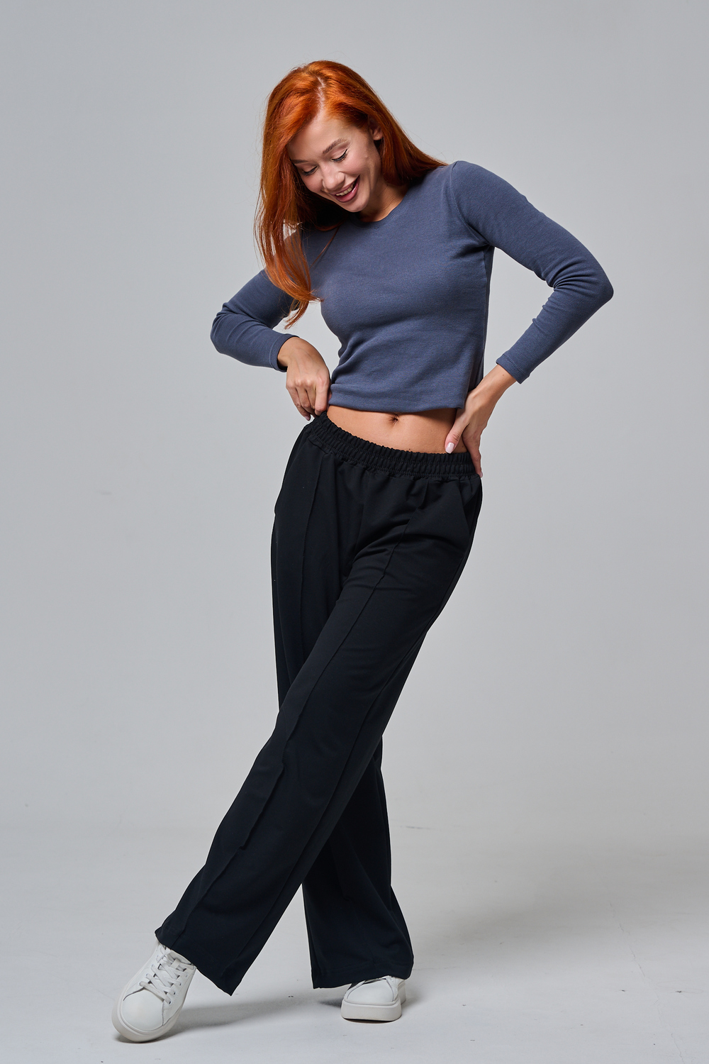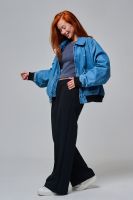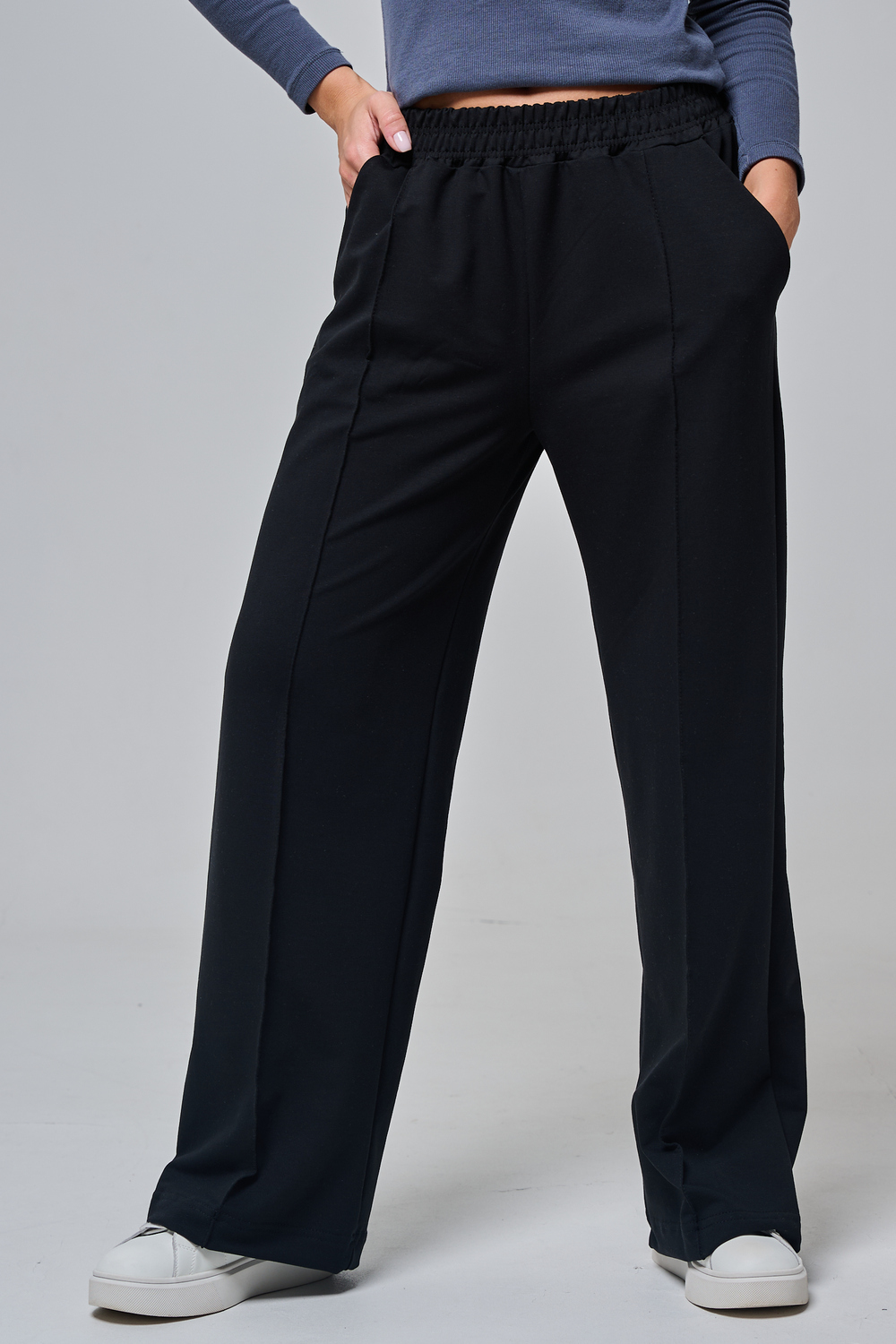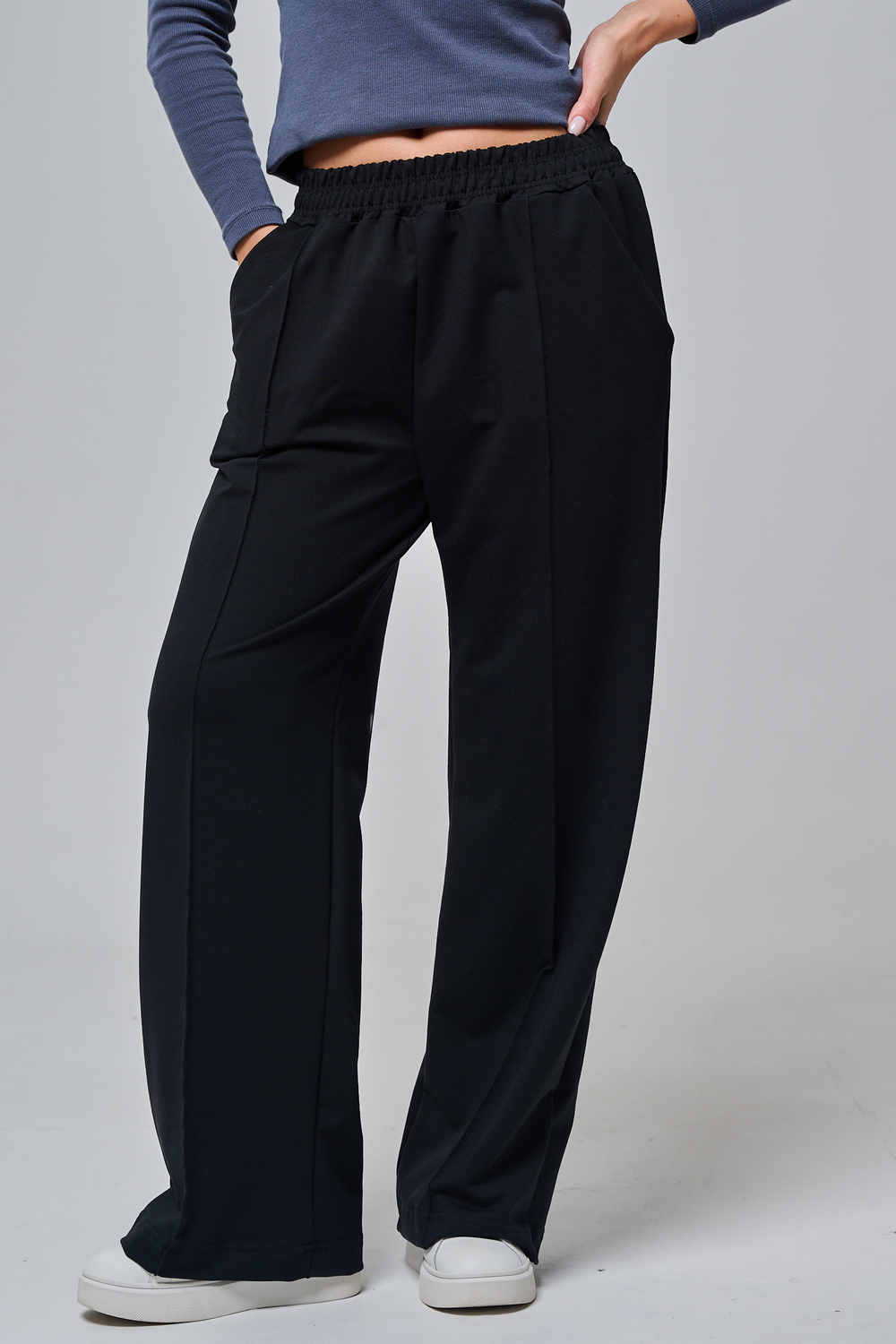 Эти элегантные широкие брюки "Urban Flow" — идеальный выбор для современного городского стиля, сочетающего комфорт и утонченность. Выполненные в классическом черном цвете, они созданы из мягкой, эластичной ткани (смесь хлопка и эластана), которая обеспечивает свободу движений и приятное ощущение на коже, словно вторая кожа. Дизайн подчеркивает женственность: высокая посадка с удобным эластичным поясом на шнуровке позволяет легко регулировать посадку, а объемные, струящиеся штанины от бедра до щиколотки создают эффектный силуэт, визуально удлиняющий ноги. Практичные боковые карманы добавляют функциональности, не нарушая минималистичный вид. Брюки "Urban Flow" универсальны: сочетайте их с облегающим топом и кроссовками для casual-образа или с блузкой и туфлями на каблуке для офисного шика.